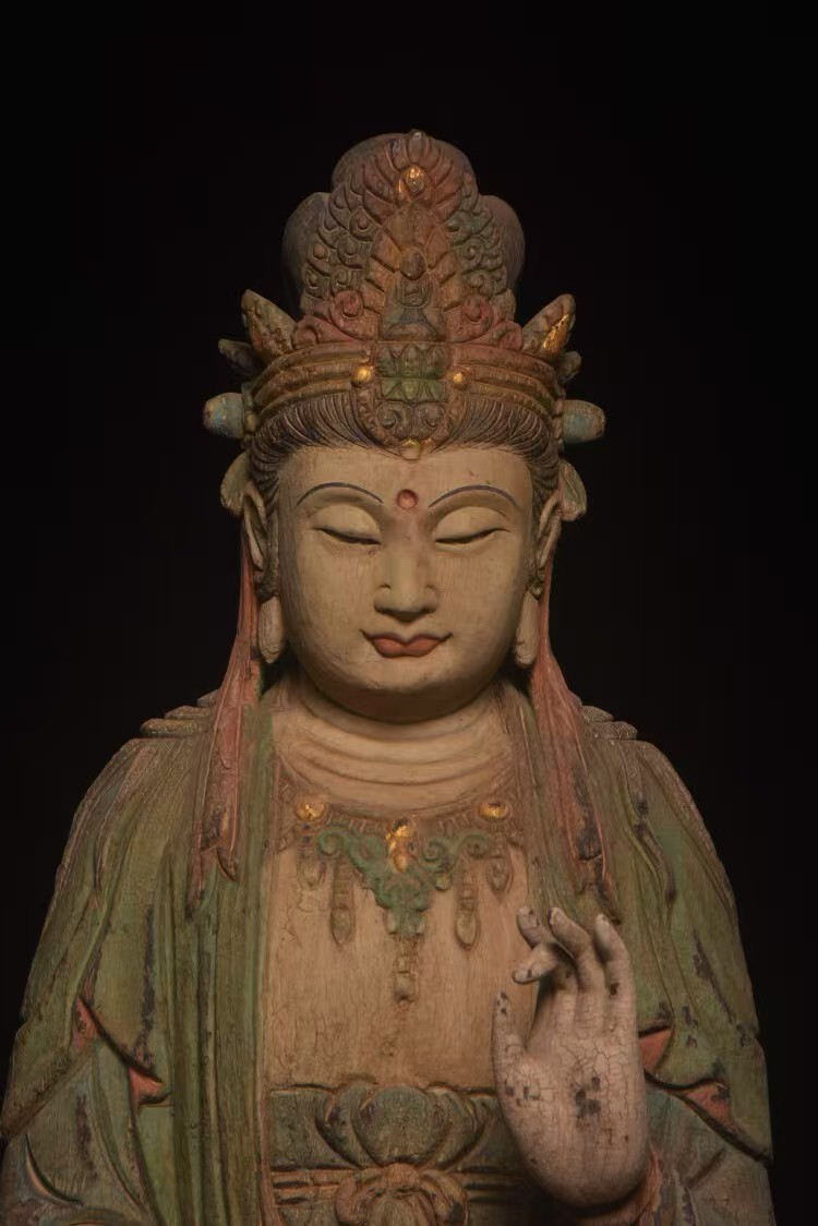 唐物 清時代 80cm老木彫 彩繪 貼金 【菩薩造像】 仏像 時代物 骨董 極細工 古美術 古置物 木製 東洋彫刻 古賞物 中国古玩102