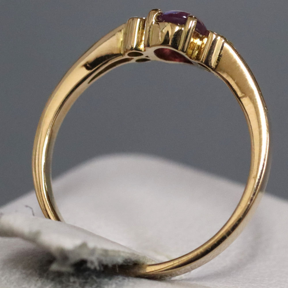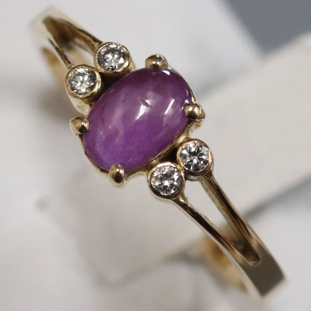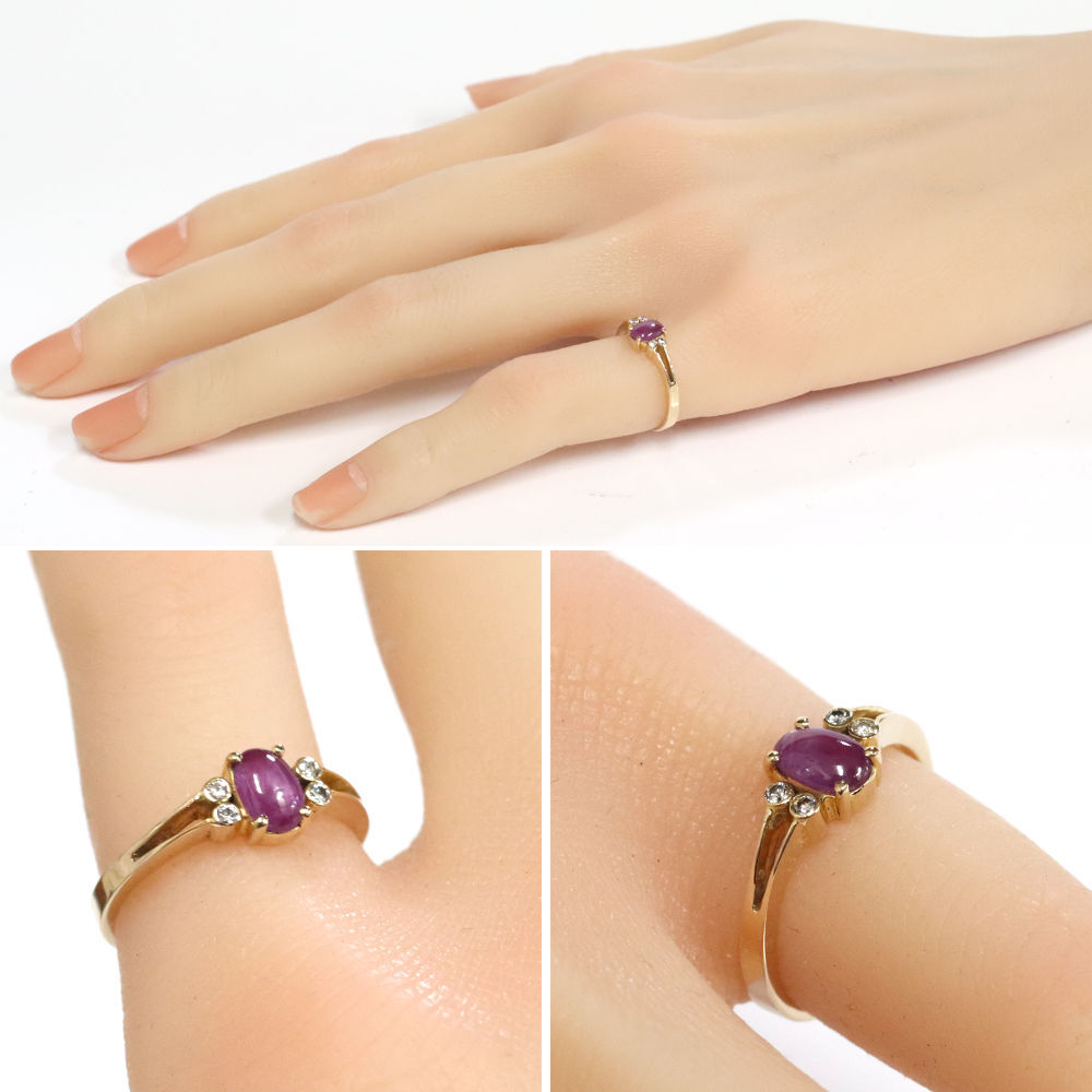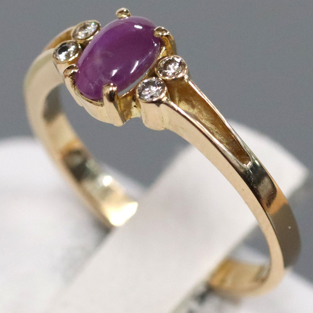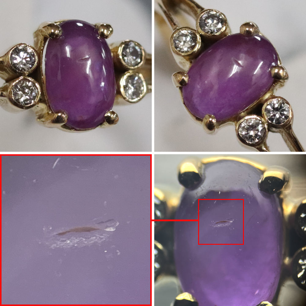 K18スタールビーダイヤモンドリングの中古品です。 太陽光下ではスターは見えず、強い光を当てることによって6条の光が見えます。 スタールビーに傷があり、目でも見えます。 ゴールドのお色味はピンクゴールドです。 石目の刻印はありません。 地金に小傷があります。