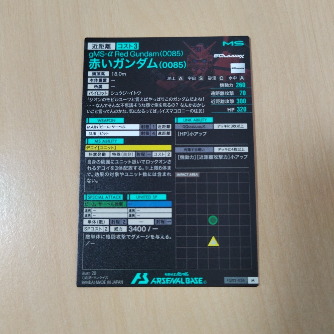 ガンダムアーセナルベース、Mレア、赤いガンダム(0085)の出品となります。未使用品です。排出後、スリーブに入れて保管していますが初期キズなど気になさる方はご遠慮ください。配送料金は梱包代込みで全国一律、120円とさせていただきます。他の出品との同梱は対応いたします。ノークレム、ノーリターンにてお願いいたします。