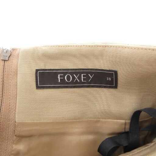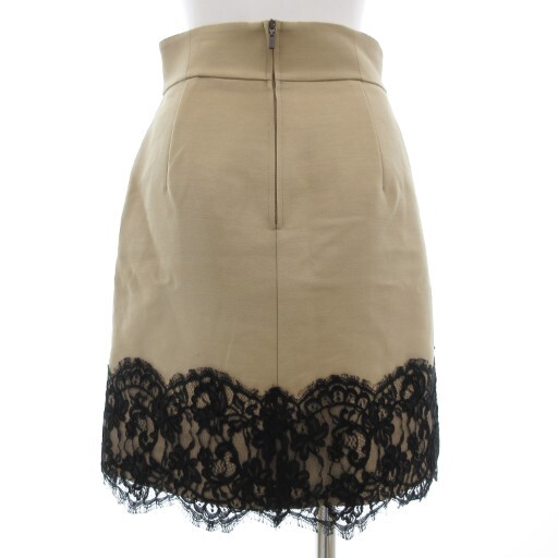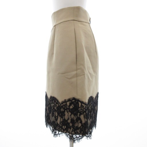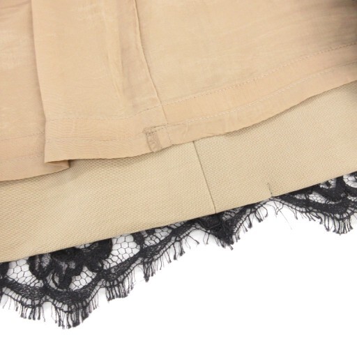 フォクシー FOXEY スカート フレア ひざ丈 シルク混 38 ベージュ 黒 ブラック レース /GV ■GY19 レディース