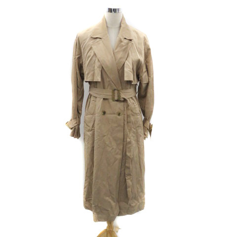 未使用品 ページボーイ PAGE BOY トレンチコート スプリングコート ロング丈 ベルト付き ダブルボタン M ベージュ /HO12 レディース