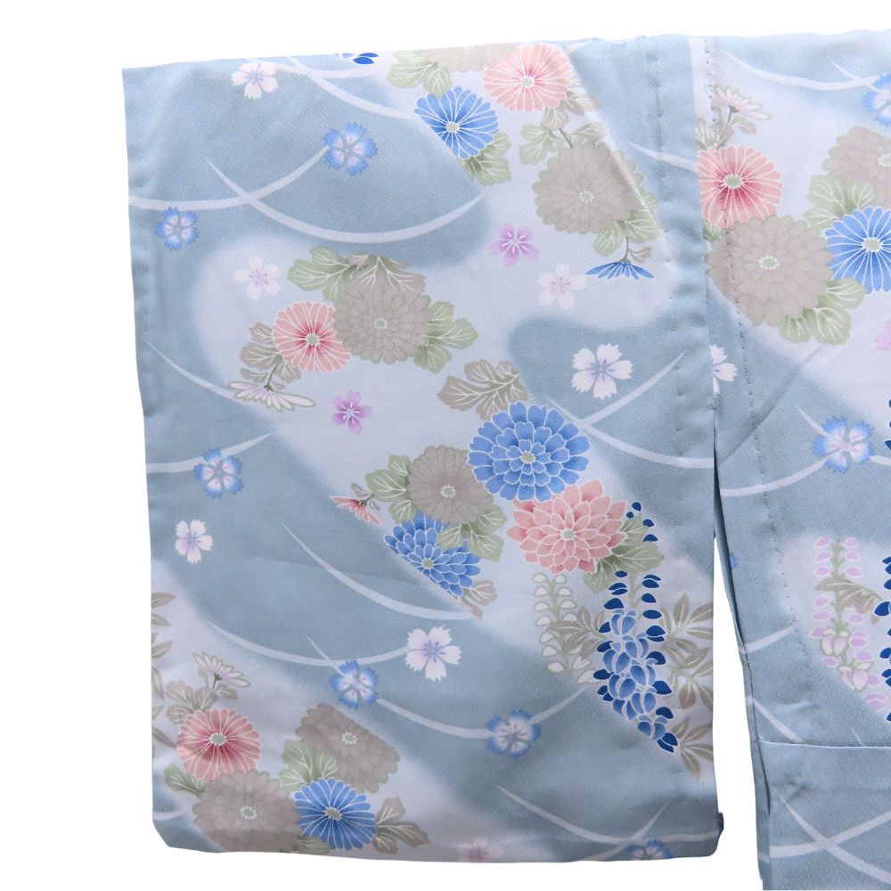 品名 【中古】 小紋 化学繊維 ブルーグレー系 グレー 花 藤 レディース 女性