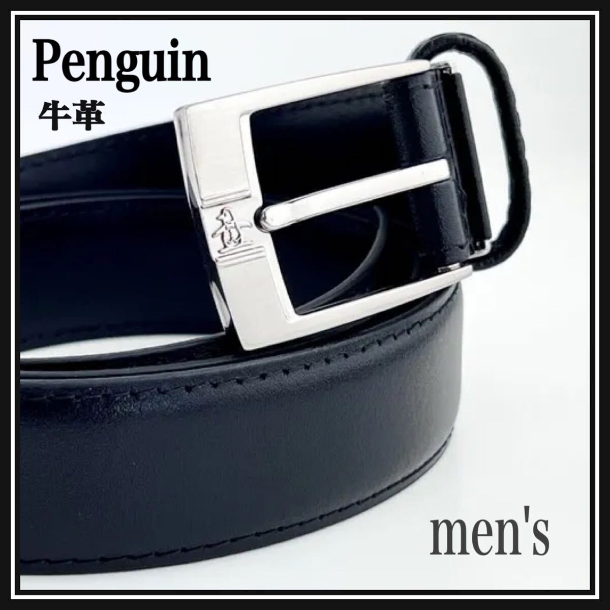 【B級品】 新品未使用.Penguin ベルト レザー ブラック 黒 本革 ビジネス ブラック レザーベルト