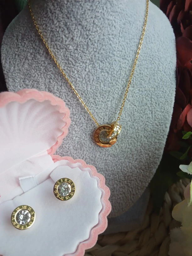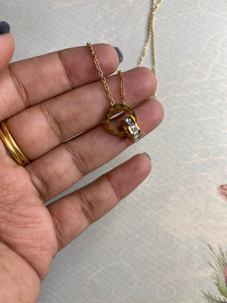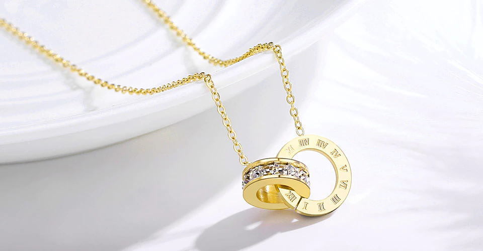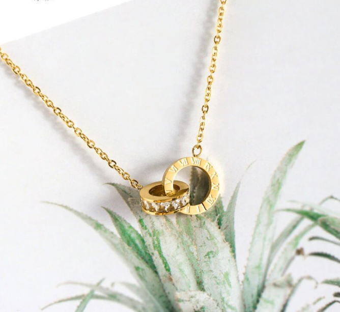 キラキラ豪華★ジルコニアダイヤ&ローマ数字刻印ネックレス ゴールド k18色