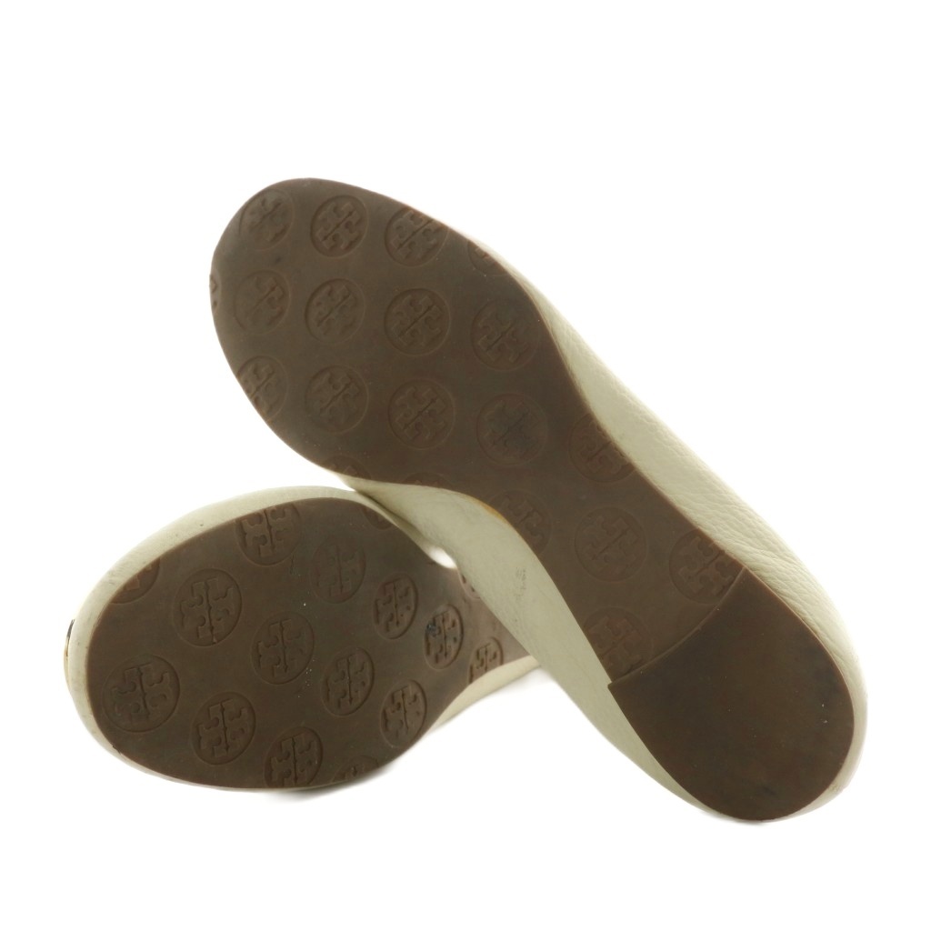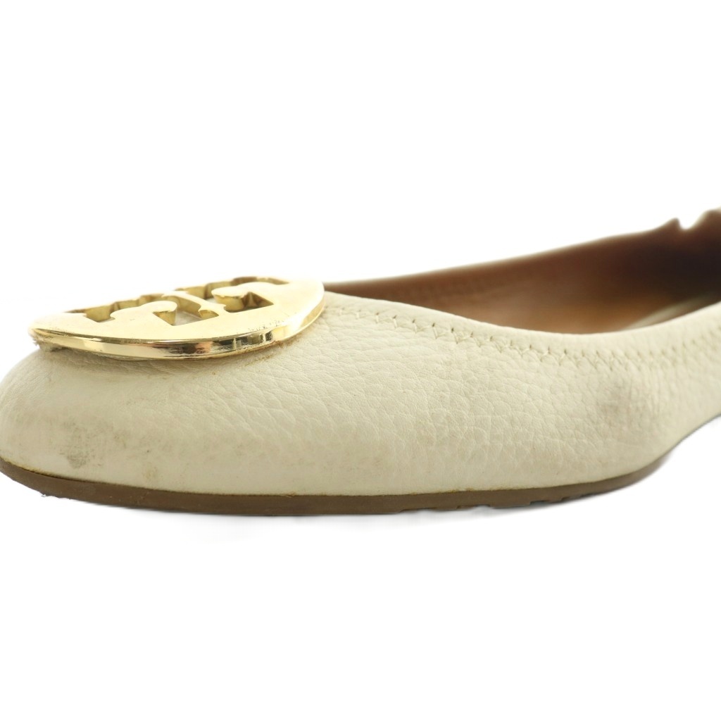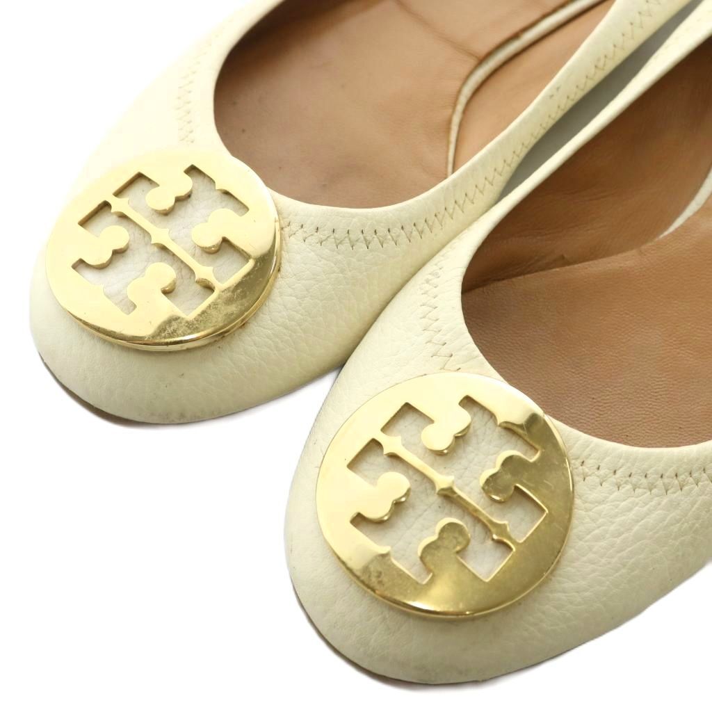 トリーバーチ TORY BURCH バレエシューズ パンプス フラット レザー ラウンドトゥ ロゴ ゴールド金具 6 23cm アイボリー