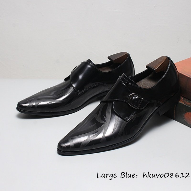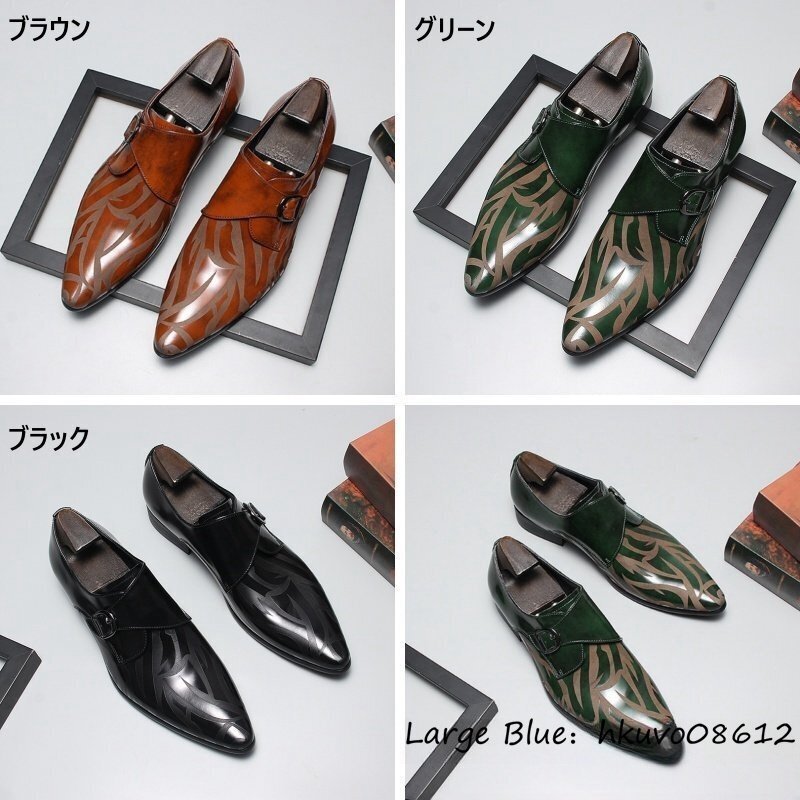 定価9万超◆最高級 本革 ビジネスシューズ モンクストラップ 職人手塗り上げ レザーシューズ 牛革 紳士靴 革靴 フォーマル ブラック 25.0cm