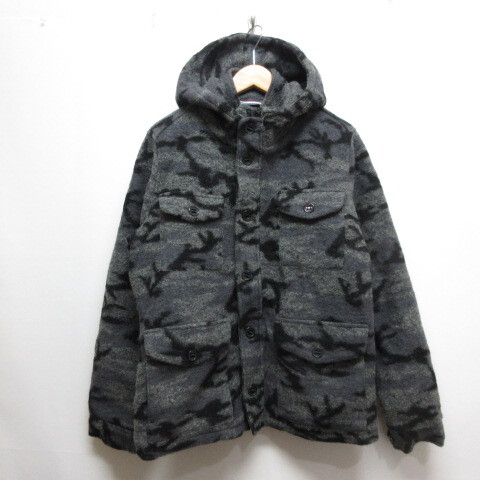 ビームスハート BEAMS HEART × ARDITES カモフラ柄 フーデッド 中綿 ジャケット ブルゾン コート S グレー ウール混 迷彩柄 アウター