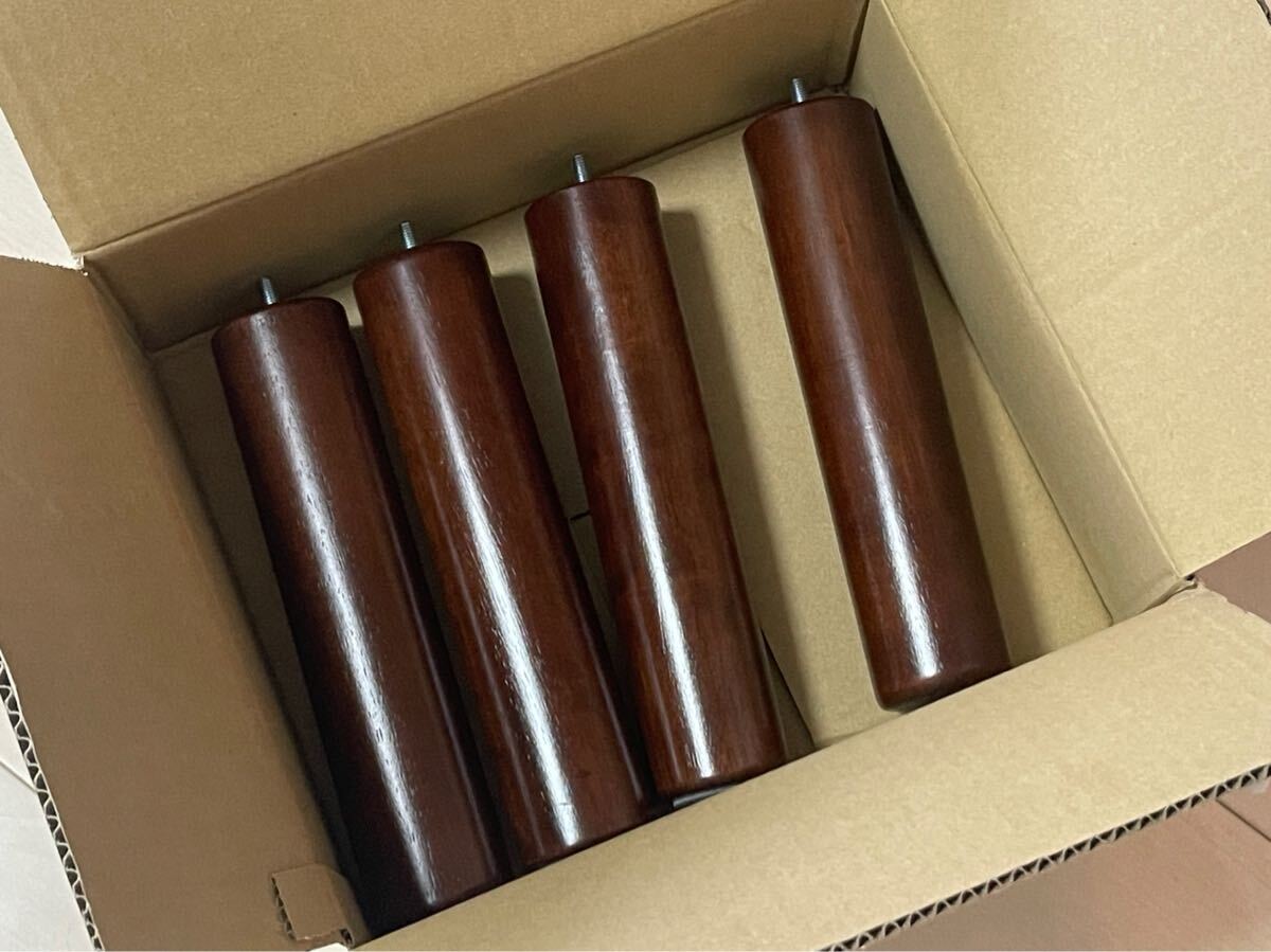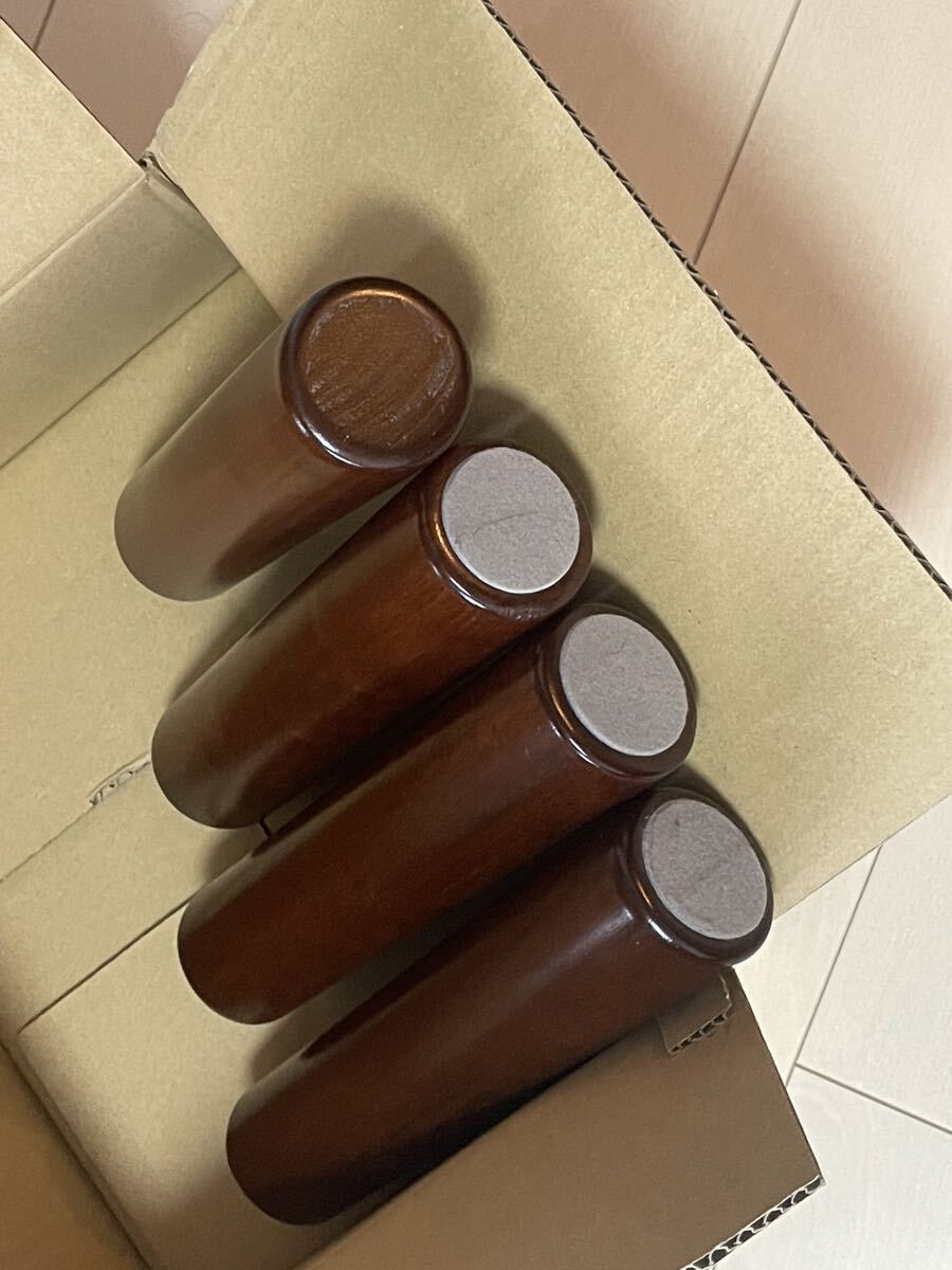 ダイニングテーブルで使えるようにソファを高さ設定をする為購入した無印良品のソファ用木製脚です。