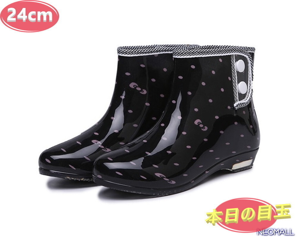 1スタ☆ ロングレインブーツ【488】 24.0cm ブラック ジョッキーブーツ防水 レインシューズ レディース 長靴 レインブーツ