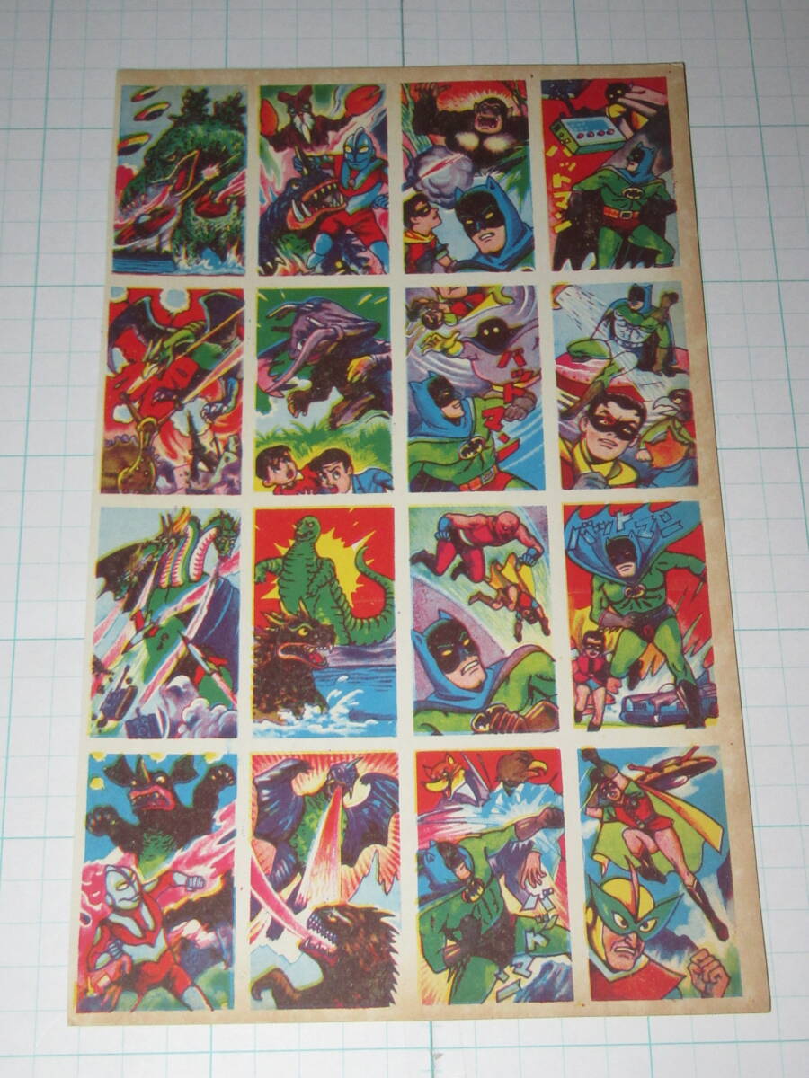 角面子 16面3シート ウルトラマン バットマン ゴジラ レインボー戦隊ロビン ウルトラQ 駄菓子屋 放送当時 めんこ メンコ カード