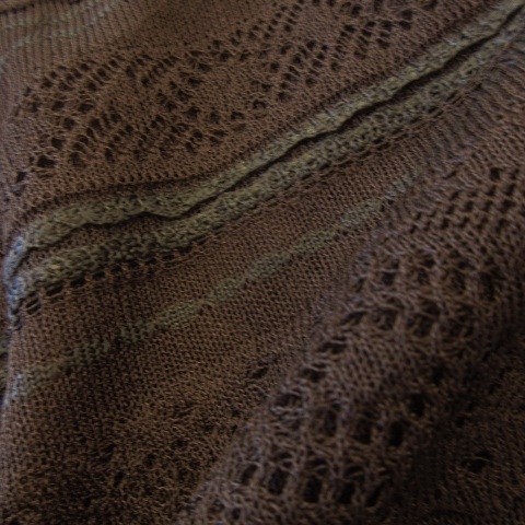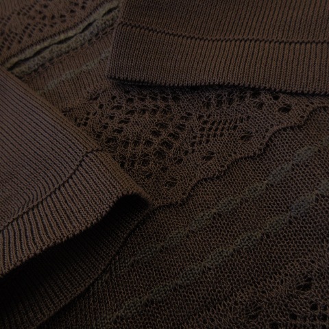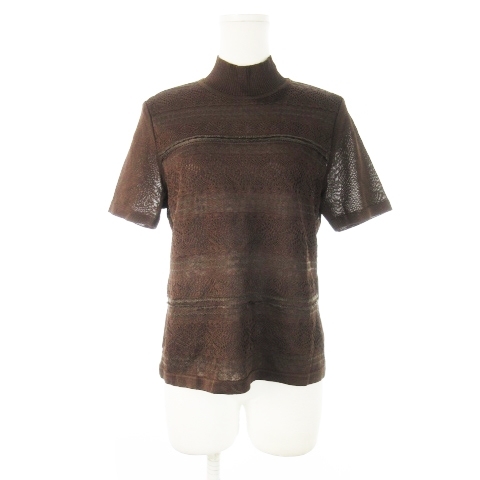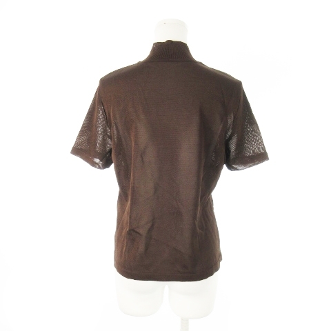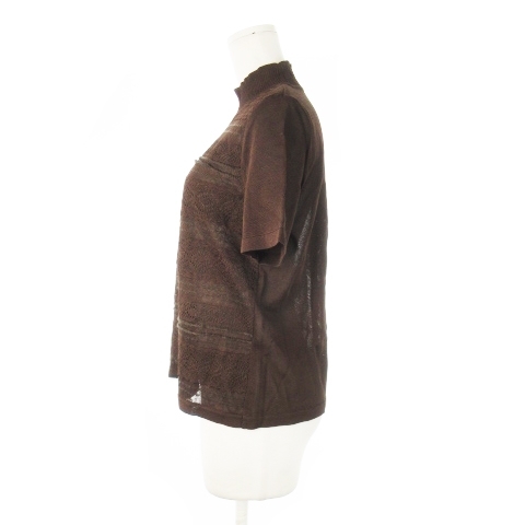 未使用品 レリアン Leilian ニット セーター ハイネック 半袖 シャリ感 レース編み 11 茶 ブラウン /CK32 レディース