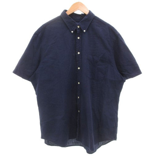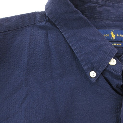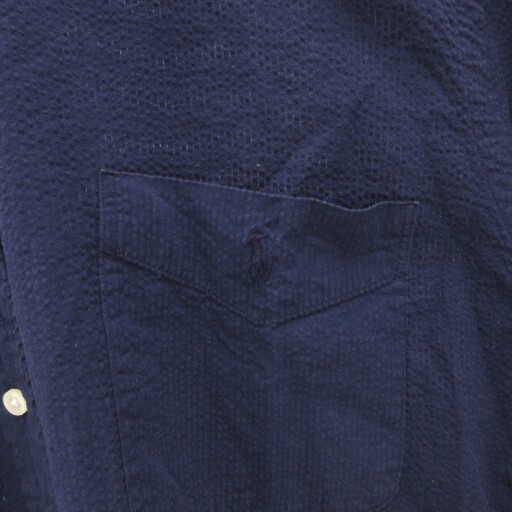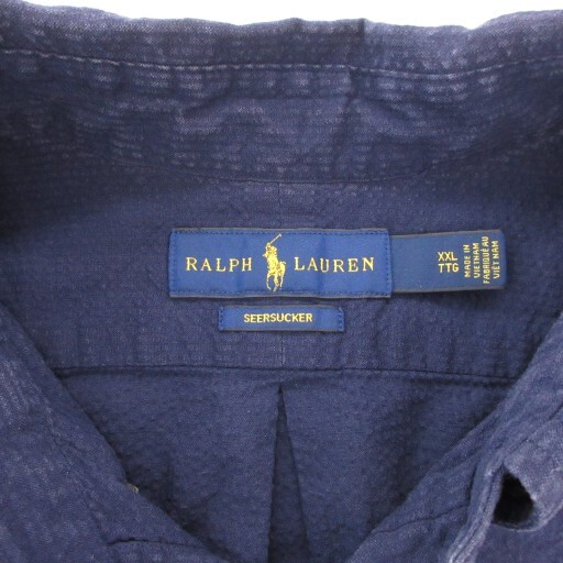 ラルフローレン RALPH LAUREN シアサッカー ボタンダウンシャツ 半袖 BD カジュアル ポニー刺繍 XXL 紺 ネイビー /GV メンズ
