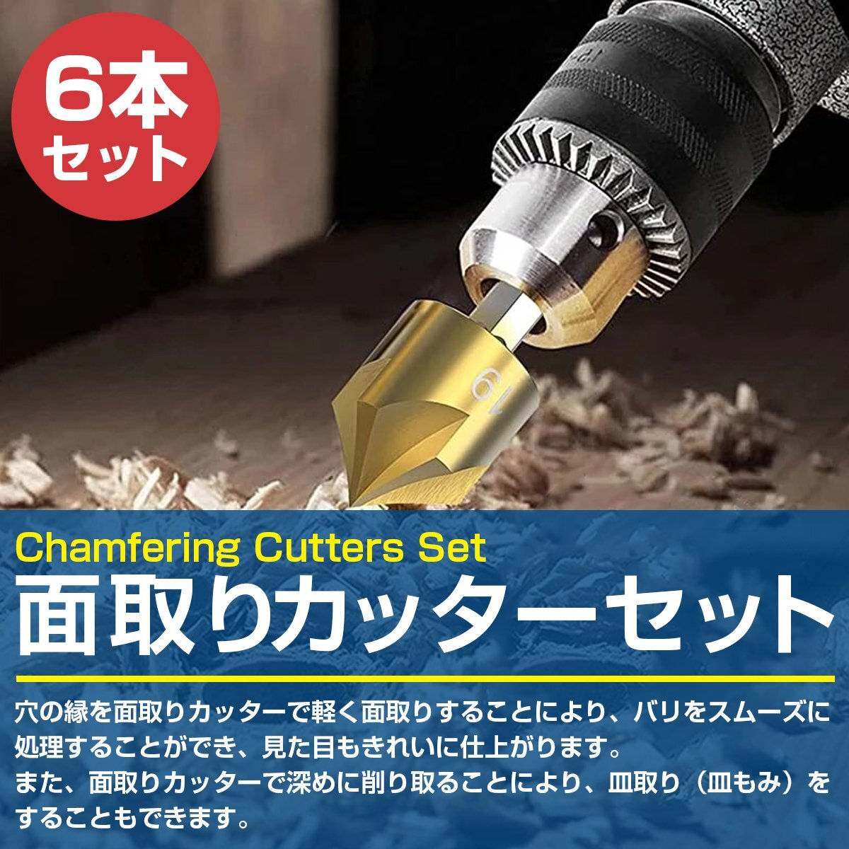 高速度鋼製 面取りカッター 6本セット 金属 アルミ プラスチック 加工 面取り工具 電動工具 ハンドメイド DIY 六角軸