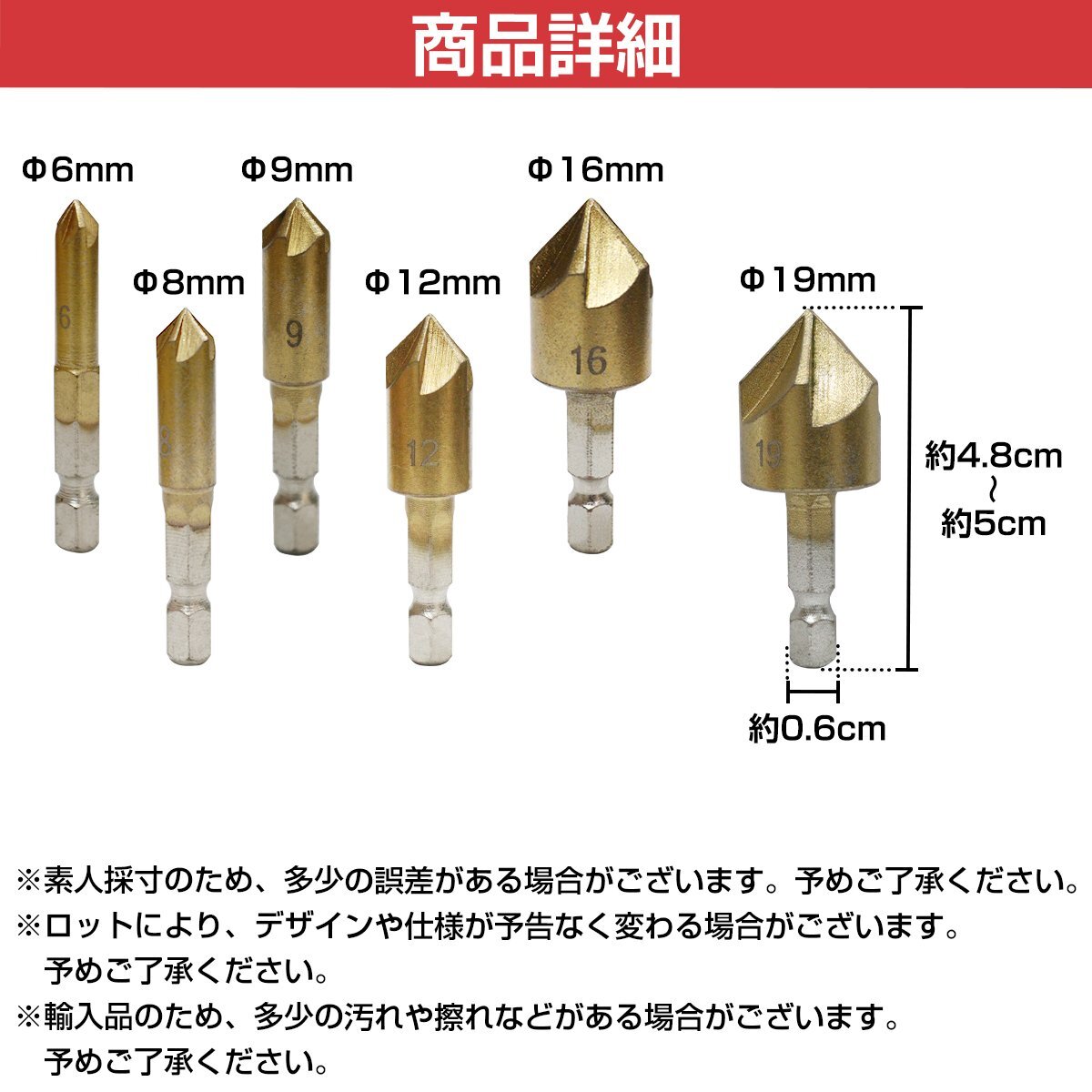 商 品 内 容【セット内容】Φ6mm/Φ8mm/Φ9mm/Φ12mm/Φ16mm/Φ19mm