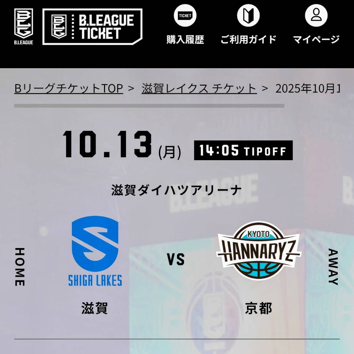 【2枚】10/13 バスケットボール 滋賀レイクス vs 京都ハンナリーズ 2階エンド指定席 通路側含む大人2連番 Bリーグ チケット 10月13日