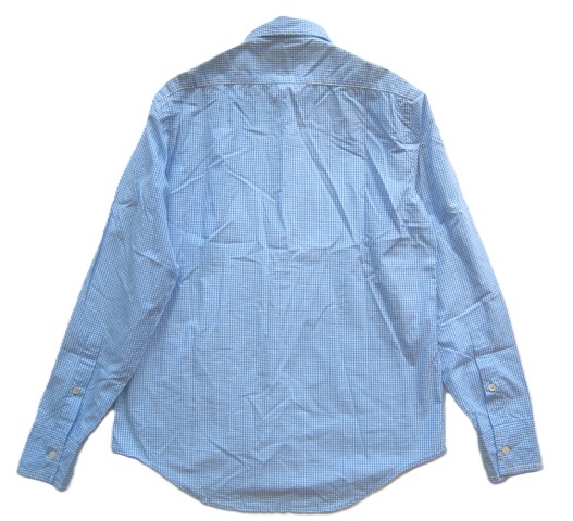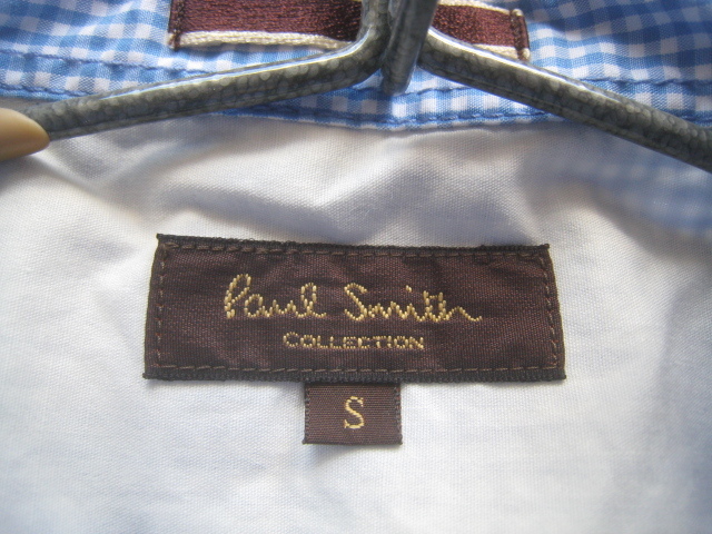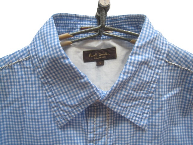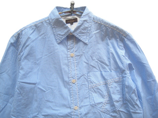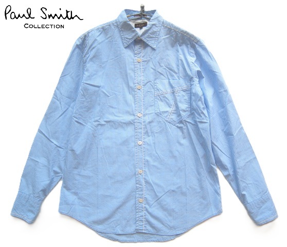 美品日本製!!ポールスミス コレクション Paul Smith COLLECTION*美シルエット ステッチデザイン ギンガムチェック柄シャツ S 白×水色