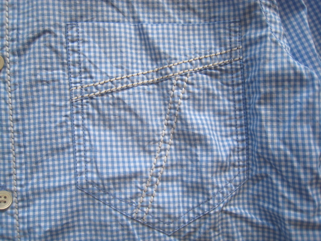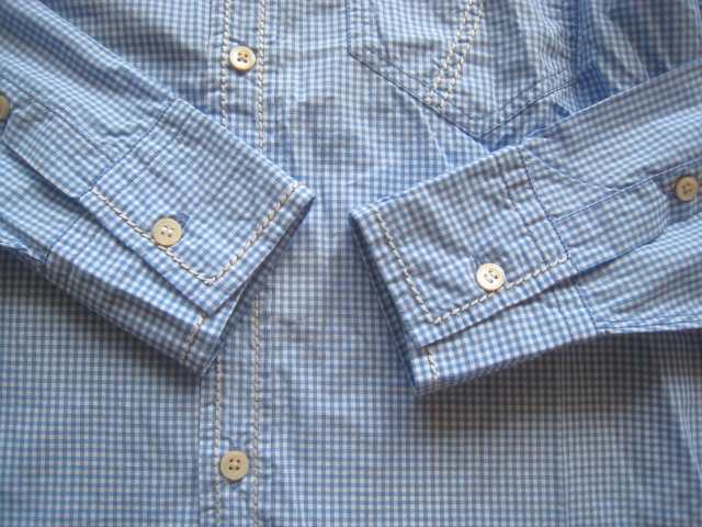 ポールスミスのコレクションラインの美シルエット ステッチデザイン ギンガムチェック柄シャツです。左胸にポケット付き、前立てやポケットにステッチデザイン、袖はセットインスリーブになっています。