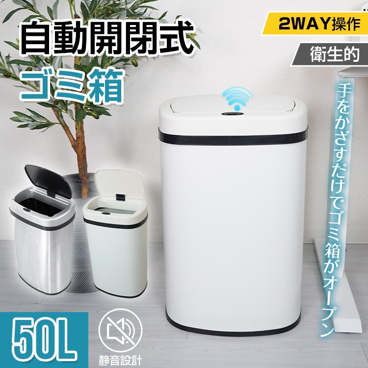 ゴミ箱 50L 自動開閉式 ごみ箱 非接触 衛生的 触らない フタ付き センサー搭載 ダストボックス ステンレス 大型 キッチン ny177