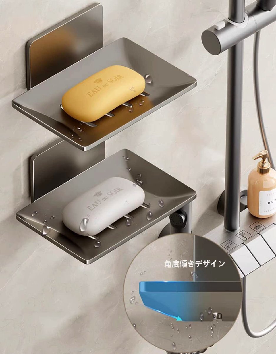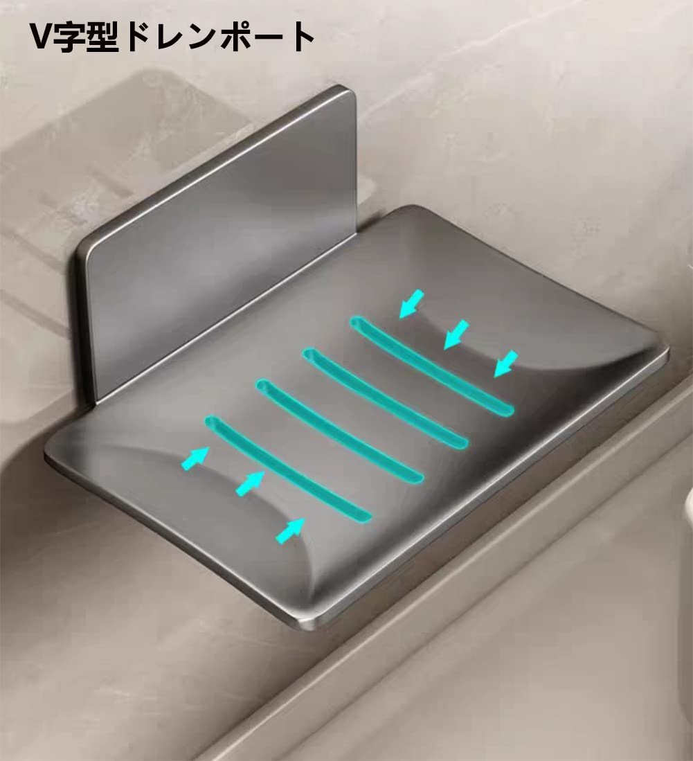 V型排水設計:効率的な水切り機能により、石鹸が常に乾燥した状態を保ちます。これにより、石鹸の溶け崩れを防ぎ、清潔に保てます