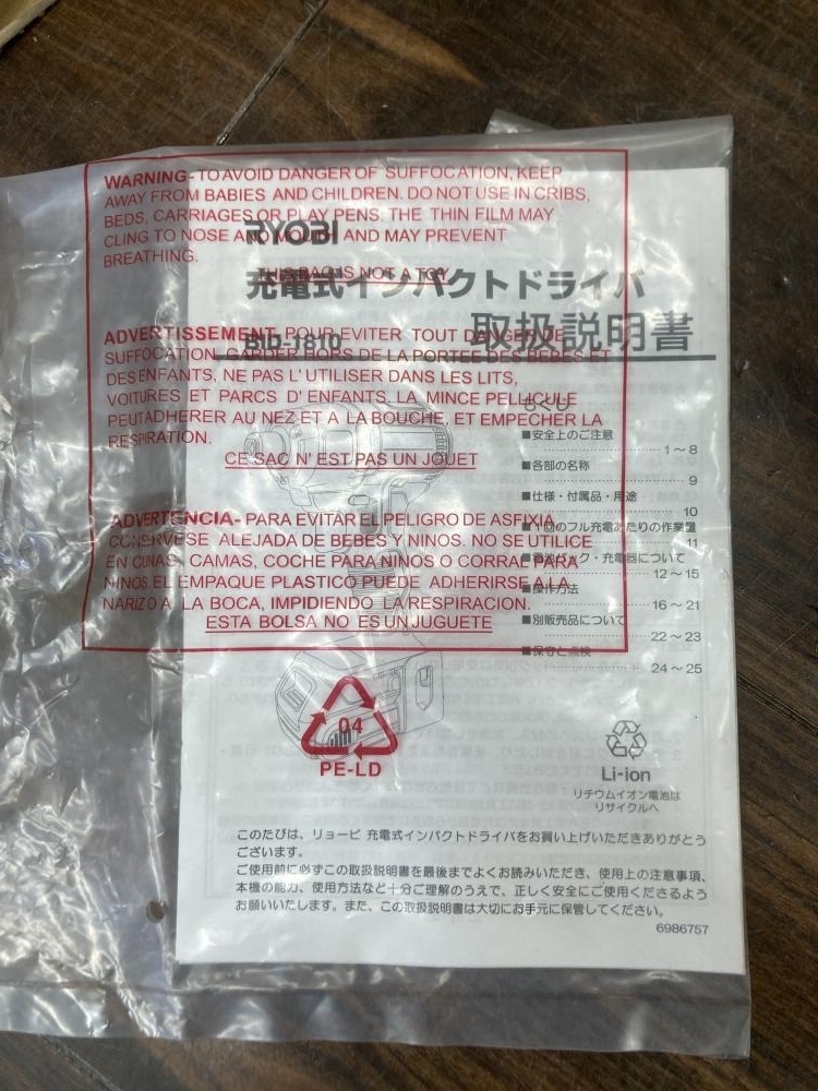 リョービ ■商品名 充電式インパクトドライバ ■型番 BID-1810 バッテリ2個・充電器付属 |