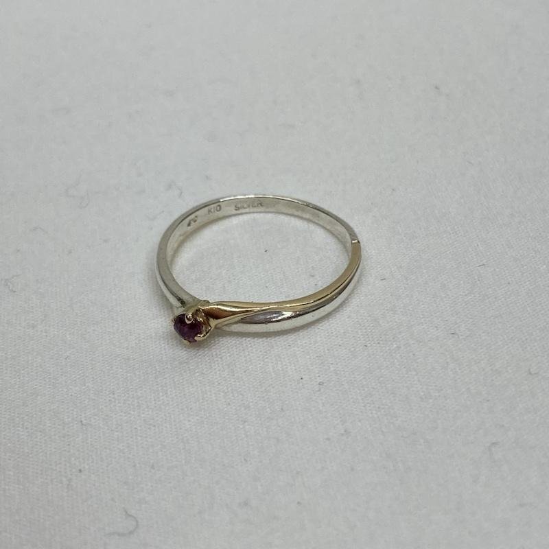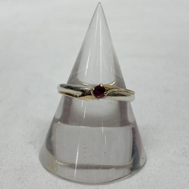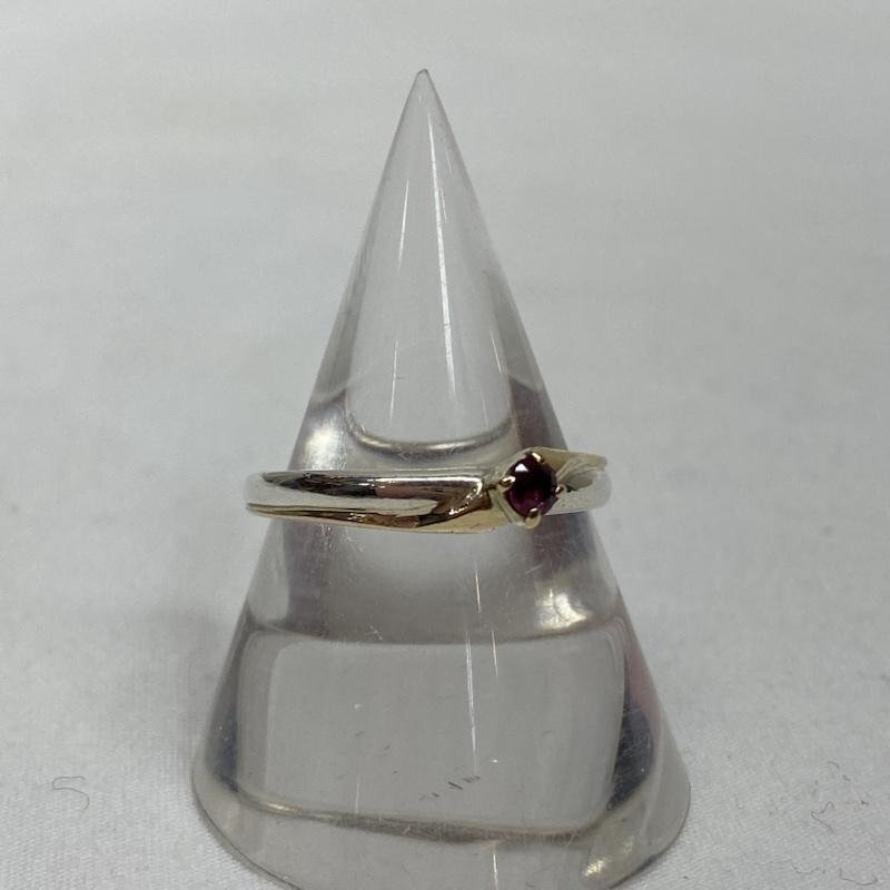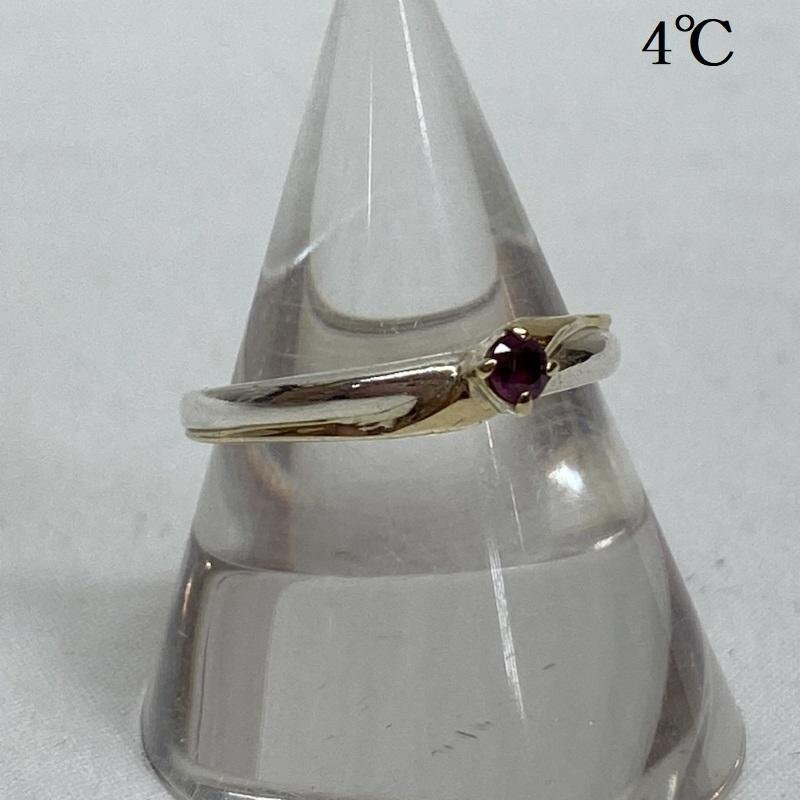 ヨンドシー ルビー K10 シルバー コンビ リング 指輪 13.5号 -