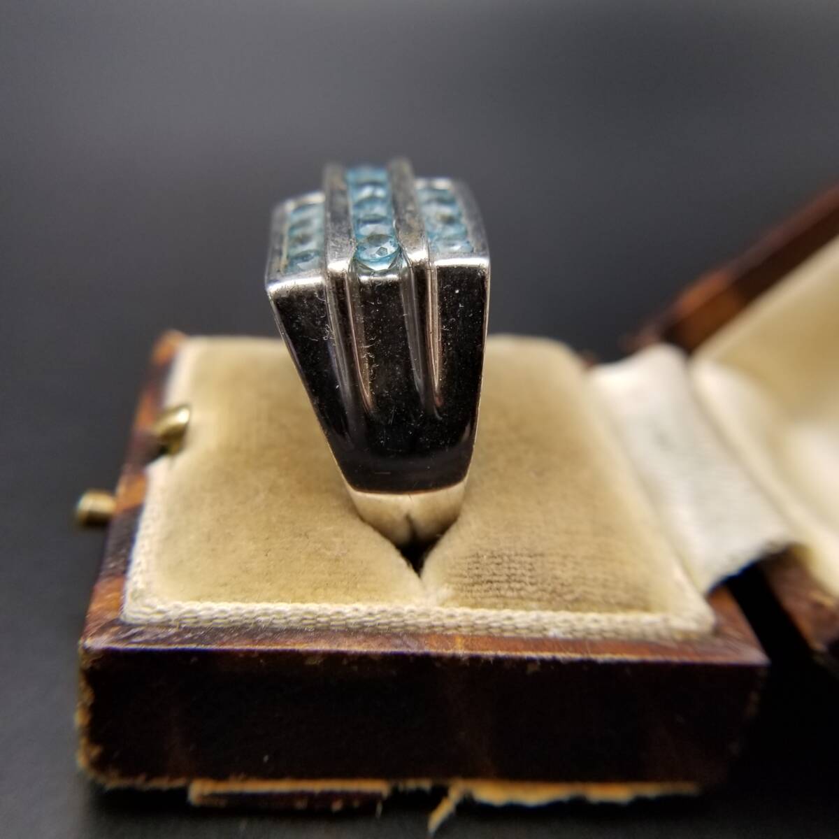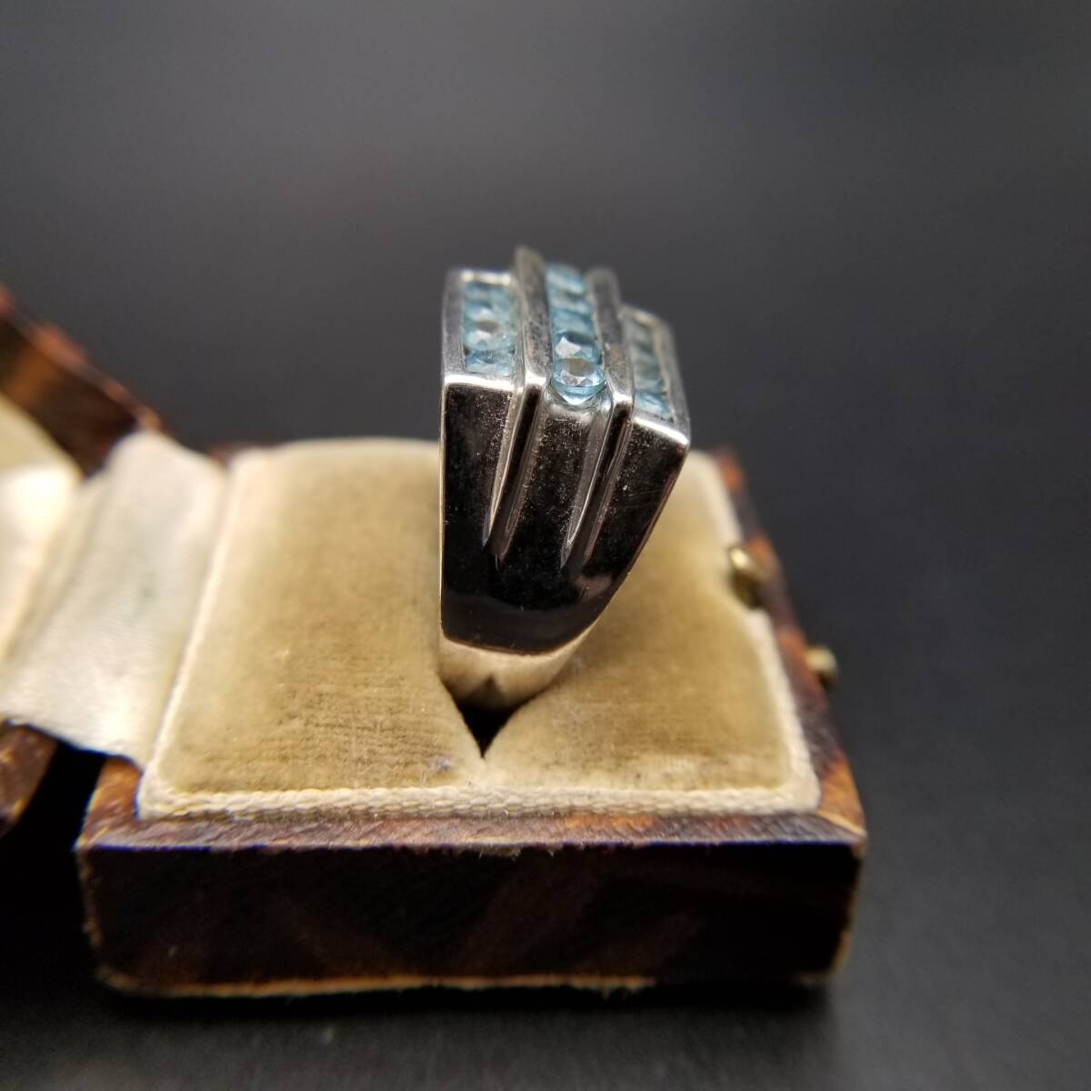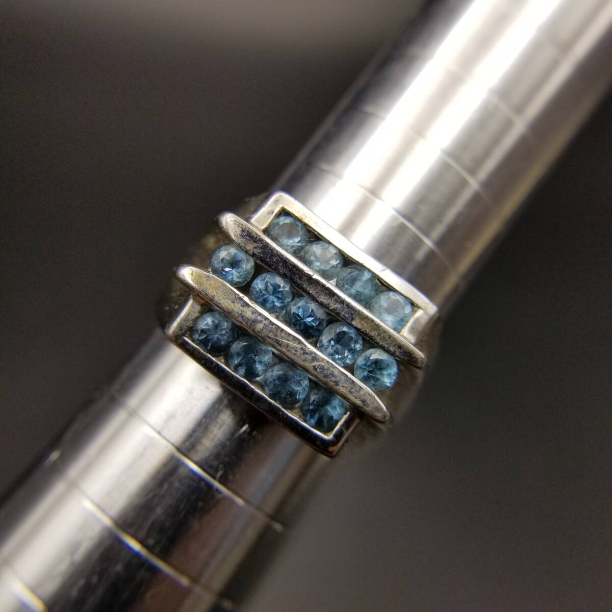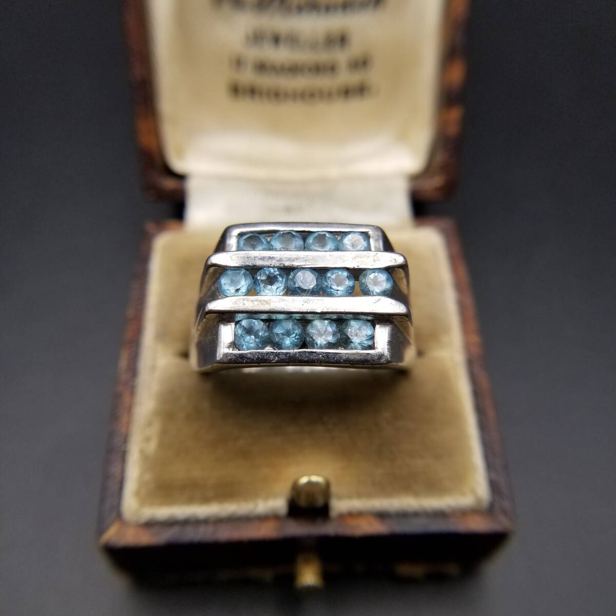 2015年 英国製 トパーズブルー 3段 925 シルバー リング 指輪 銀 ゴージャス 存在感 Birmingham ホールマーク 大きいサイズ R16-R