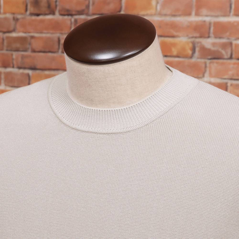無駄を削ぎ落としたミニマルな佇まいが際立つクルーネックニット。素材にはコットン100%のハイゲージニットを使用。さらりとしたドライタッチな肌触りで、秋口から春先までロングシーズン活躍します。