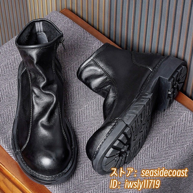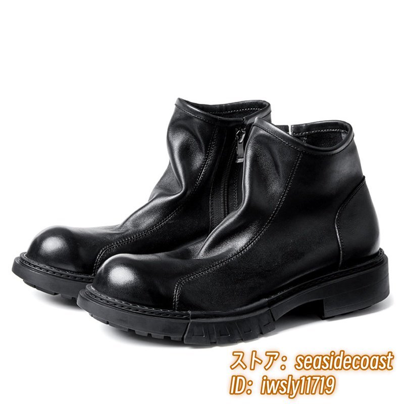 12万*正規品 最高級 ショートブーツ エンジニアブーツ マーティンブーツ 牛革 ワークブーツ 職人手作り 本革 レザーブーツ ブラック 27.0cm