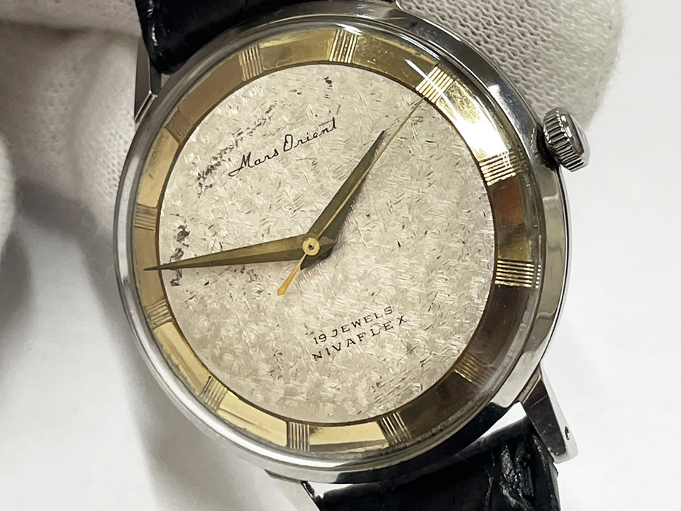 ORIENT マルス オリエント 19石 祥雲模様 ツートン文字盤 手巻き 稼働 50年代 60年代 ヴィンテージ メンズ腕時計 ●