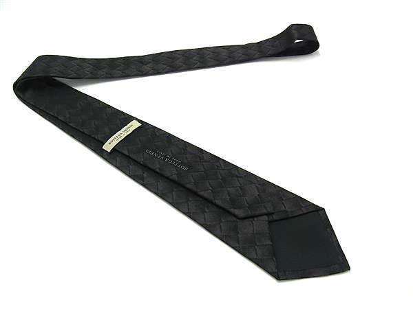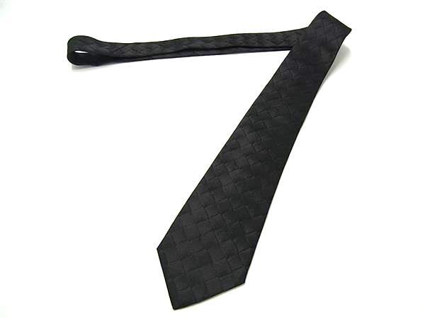 ■極美品■ BOTTEGA VENETA ボッテガヴェネタ イントレチャート柄 シルク100% ネクタイ ビジネス 紳士 メンズ ブラック系 FR2207