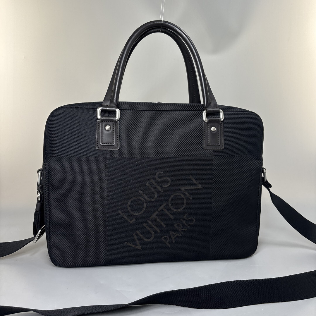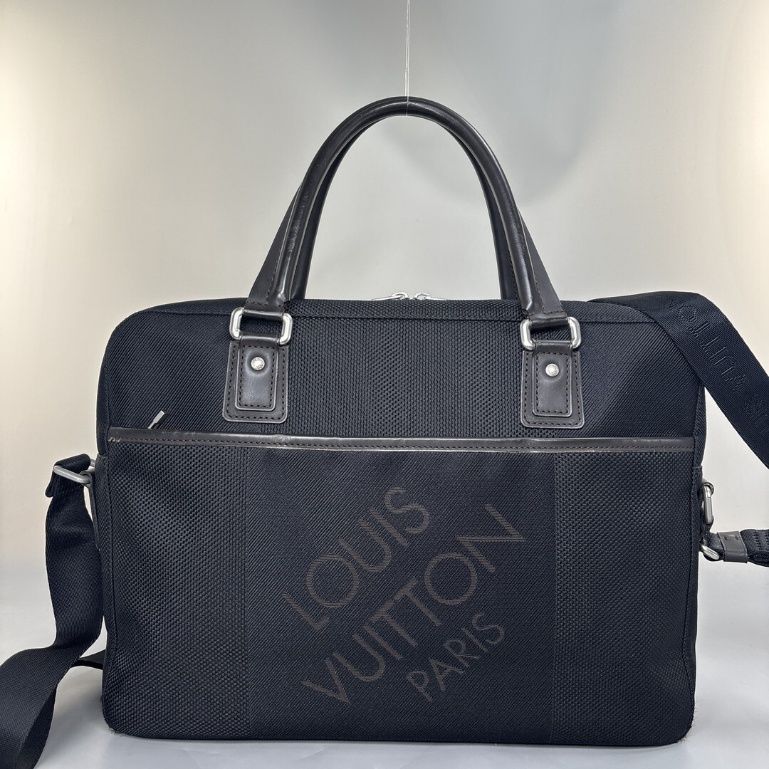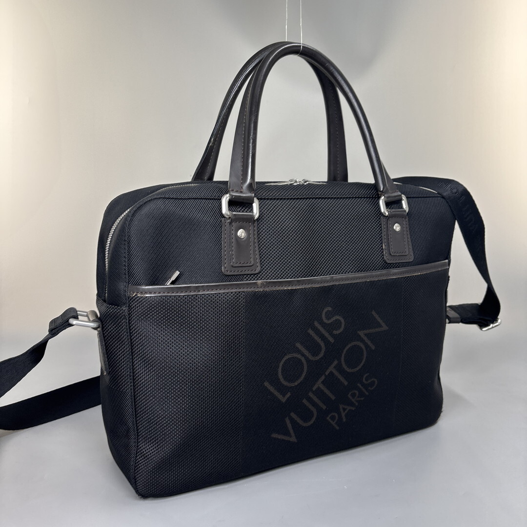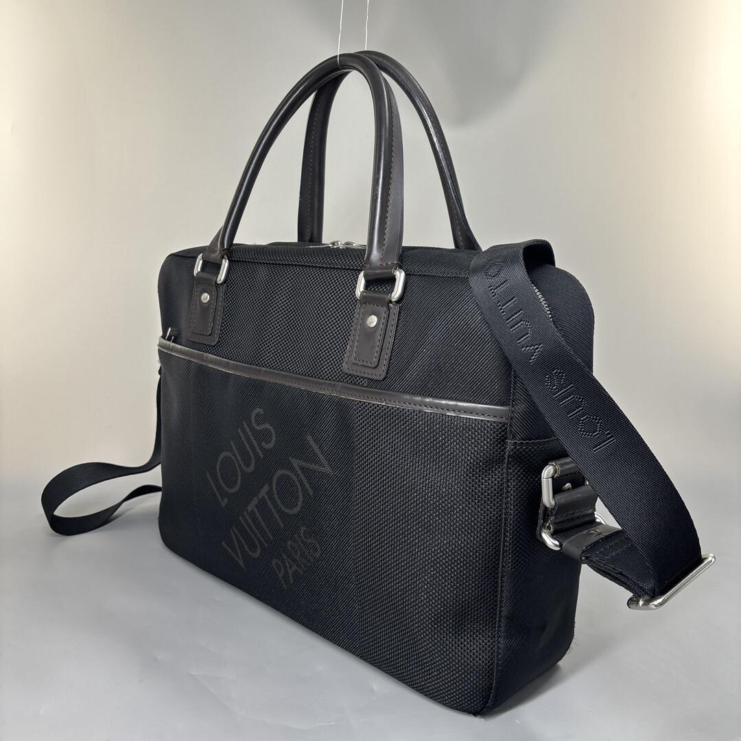 超極美品 ダミエ ジェアン ヤック M93082 レザー 2WAY ビジネスバッグ 斜めがけ ショルダー ブリーフケース A4 ブラック 黒 ショルダー