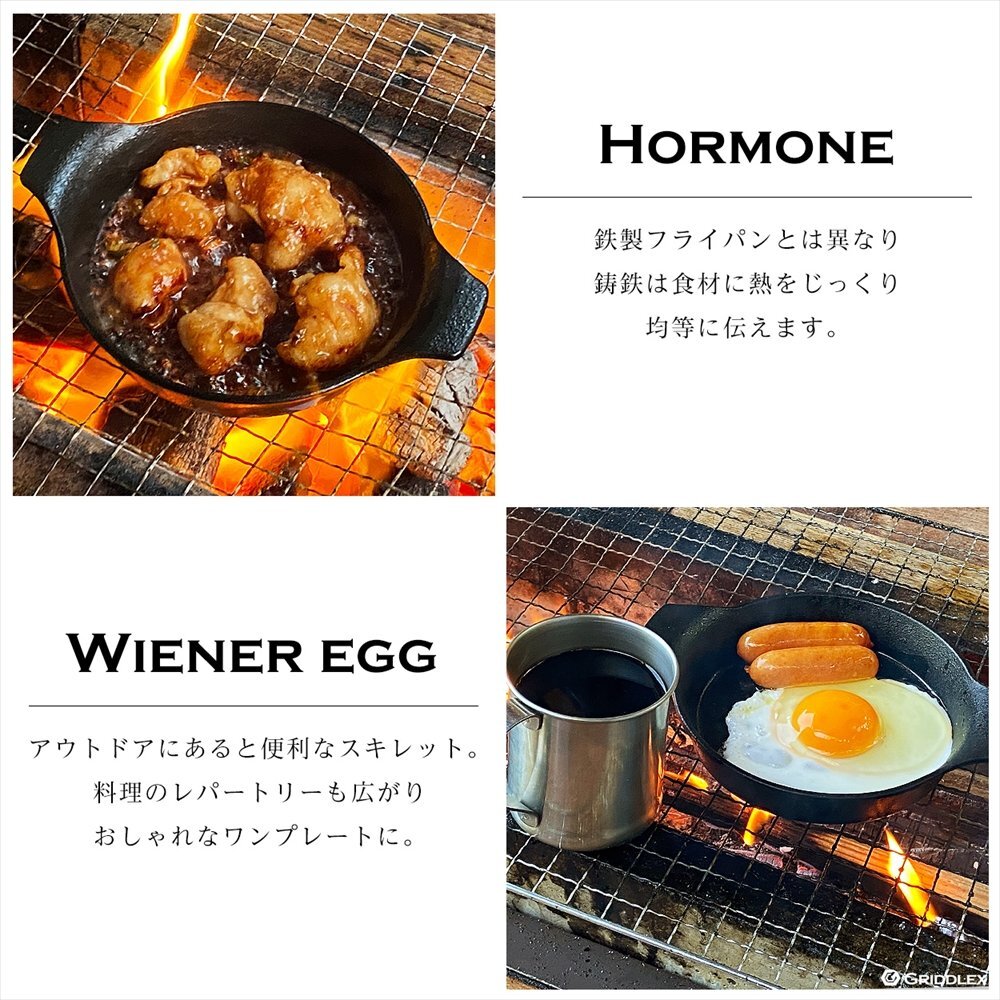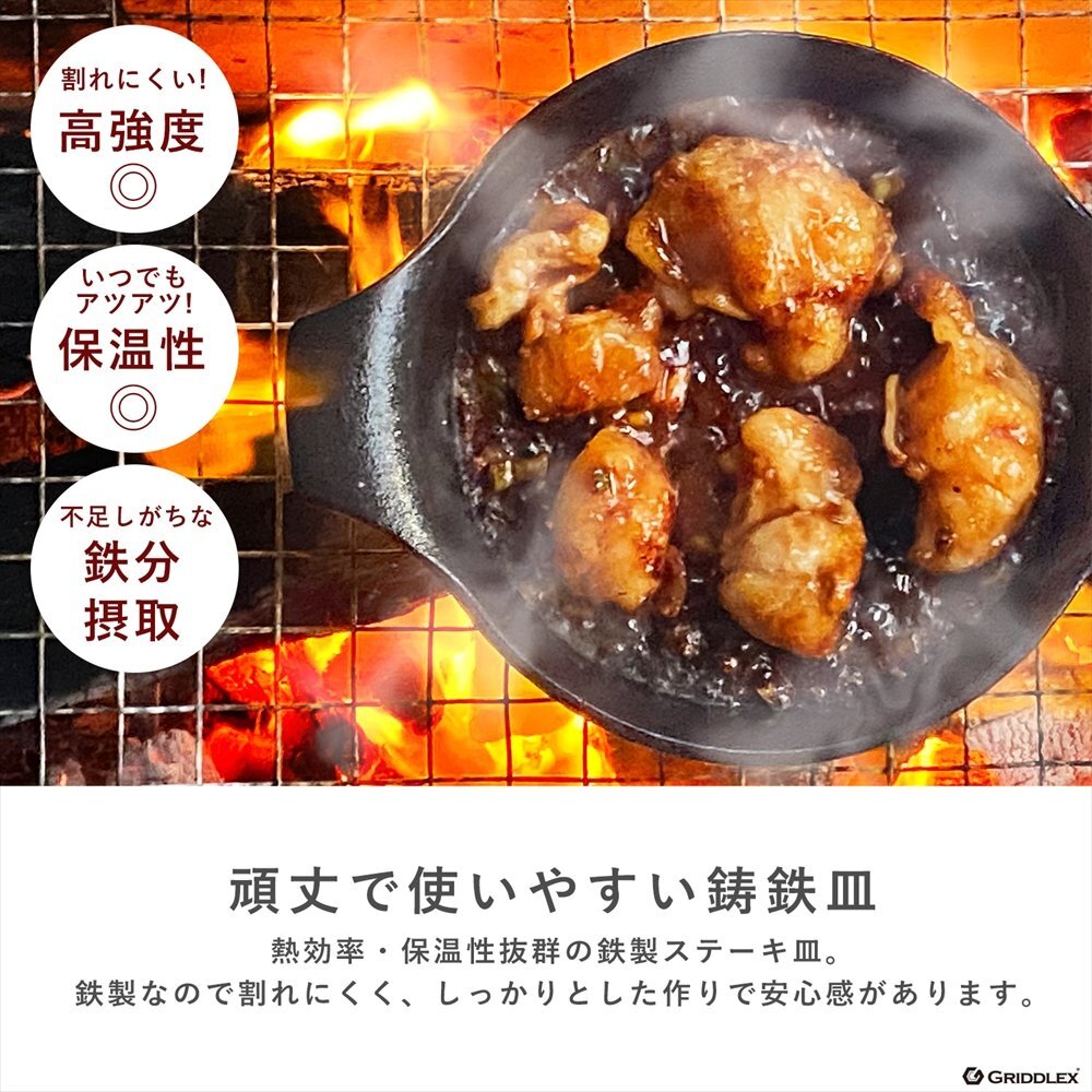 | 特徴 | 電磁調理器にも対応した熱い料理をそのまま提供できる鉄製のお皿です。 ハンバーグやステーキ、お好み焼き…様々な用途でご使用頂けます。 アウトドアでも大活躍、できたてをそのまま提供できる鉄皿です。 |