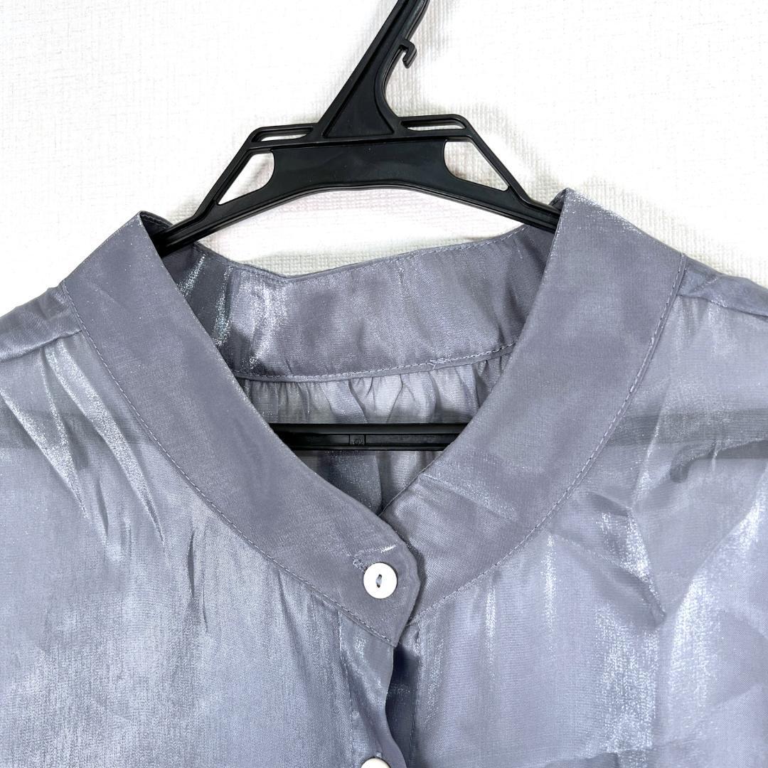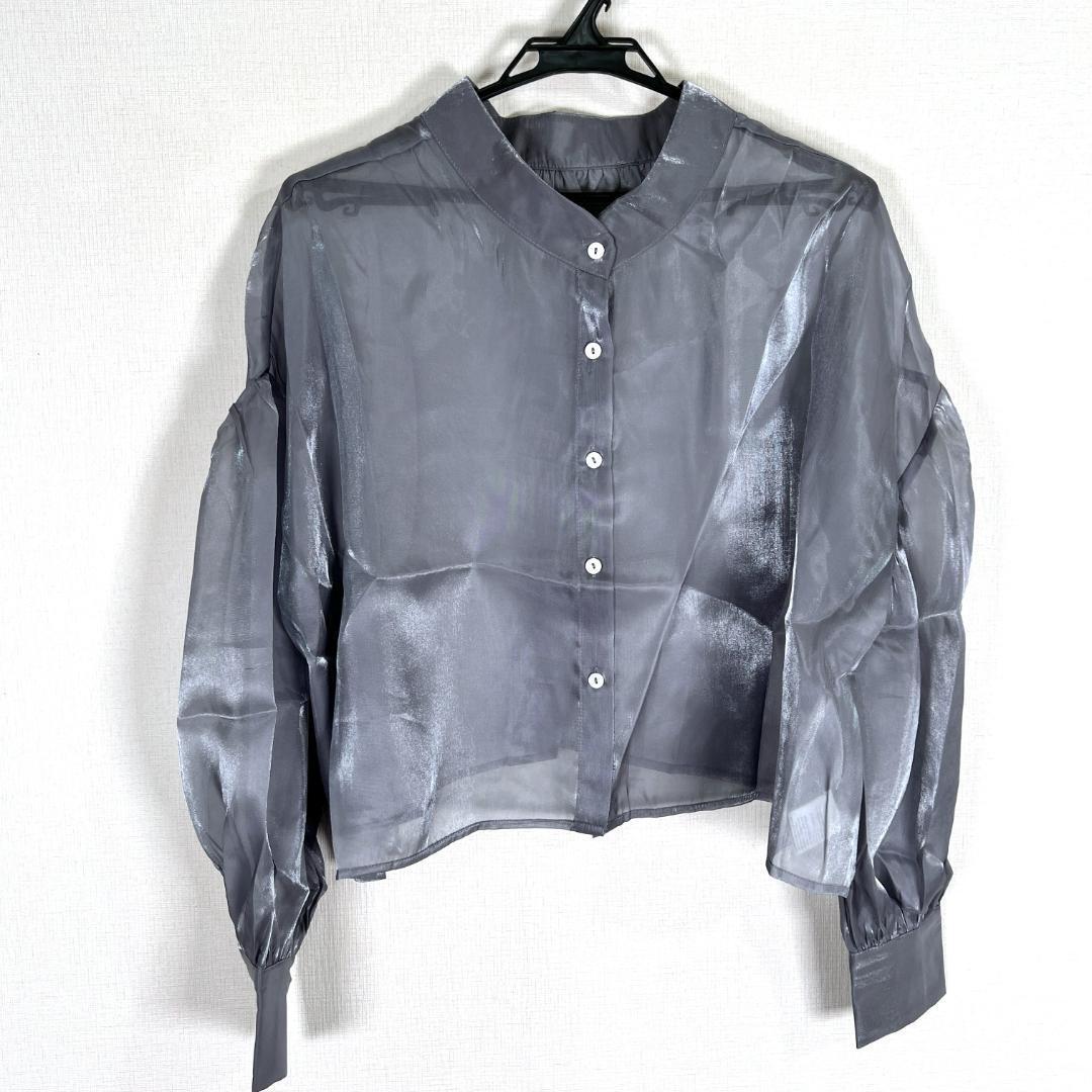 【GRL】グレイル グレー系 光沢 長袖 シアーブラウス シースルーシャツ 透け感 トップス 女性用 レディース Fサイズ フリーサイズ【a036】