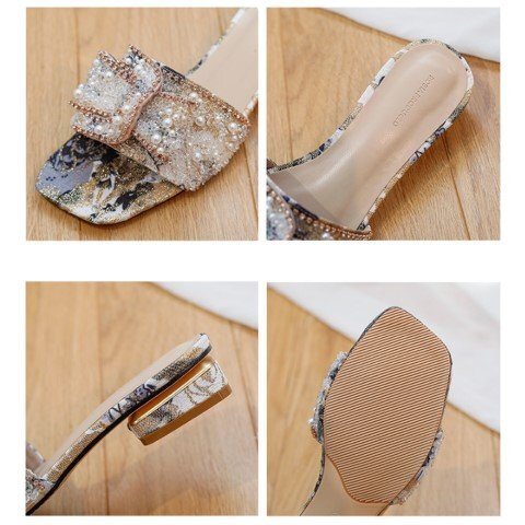 レディース ミュール オープントゥ スタイルアップ ビジュー パール ビーズ キラキラ 装飾 花柄 24.0cm(38) ワンカラー