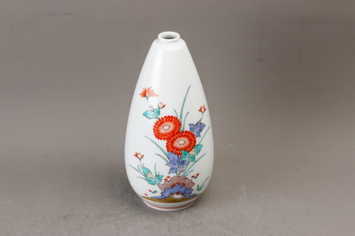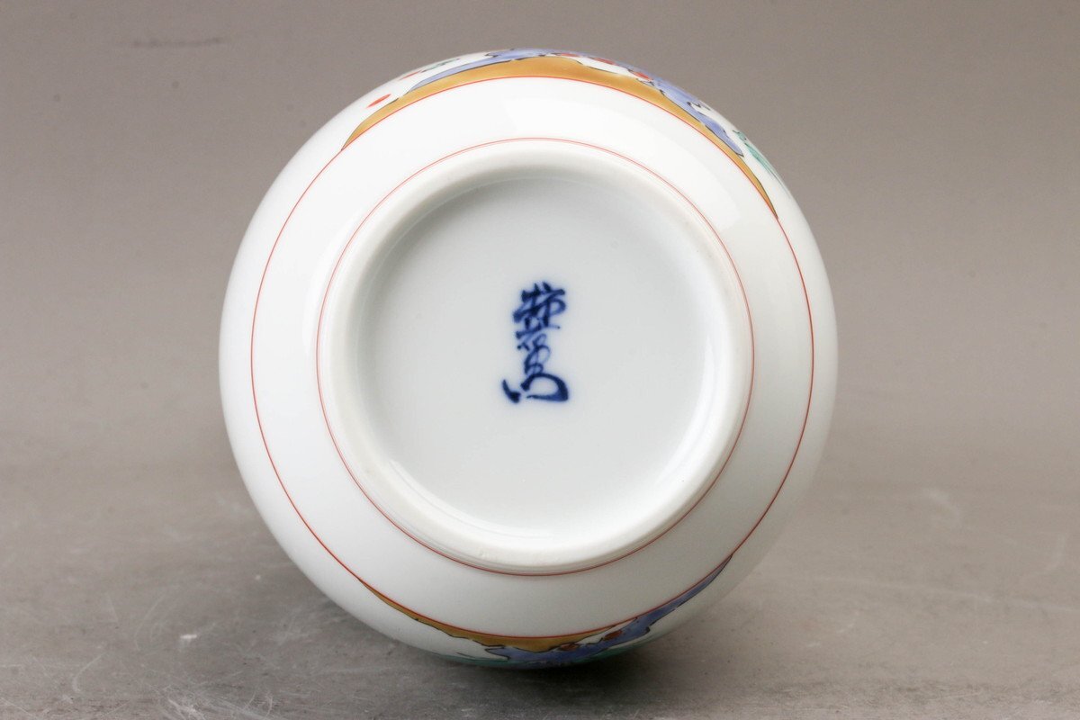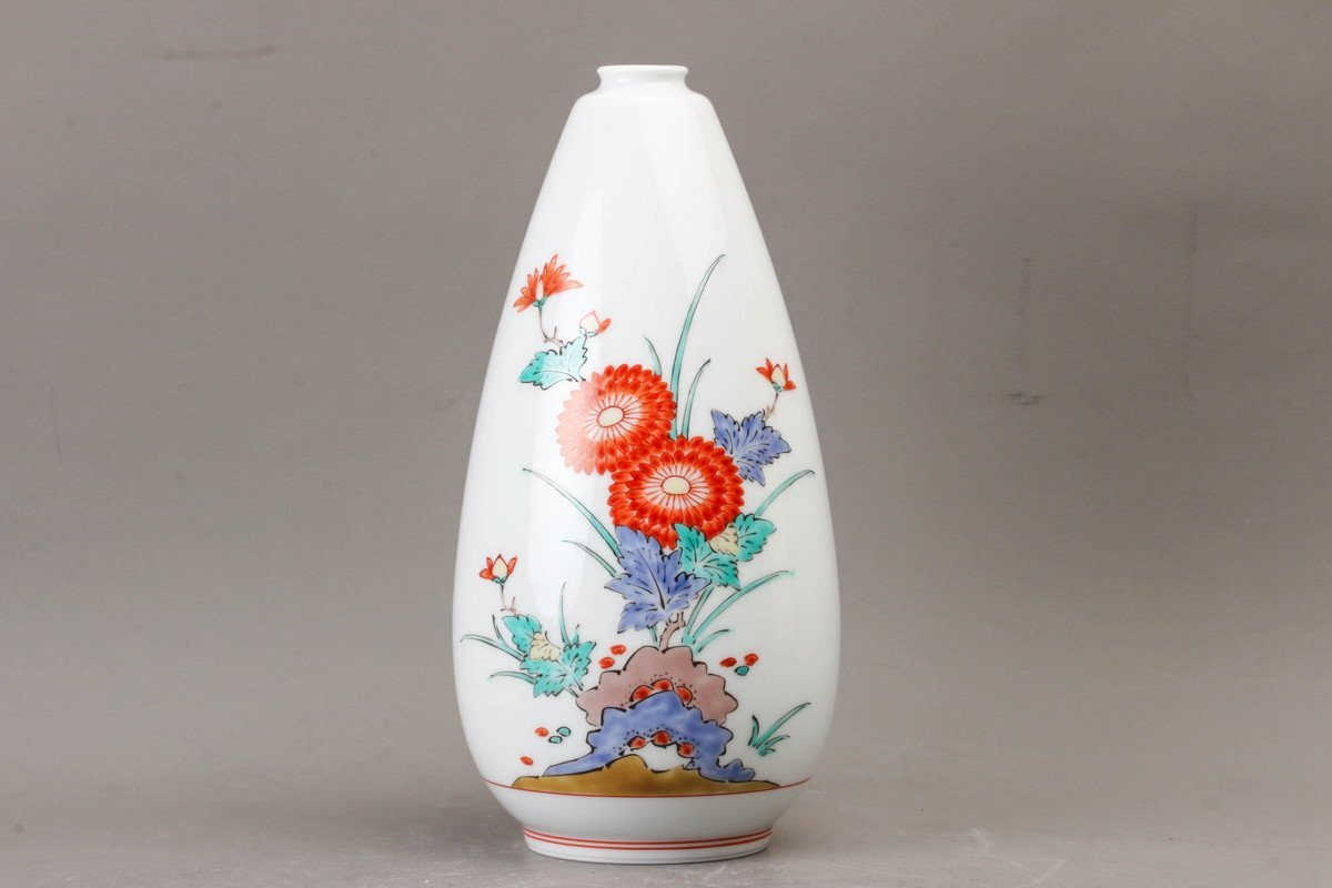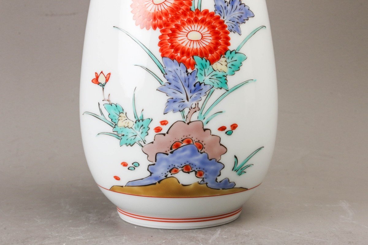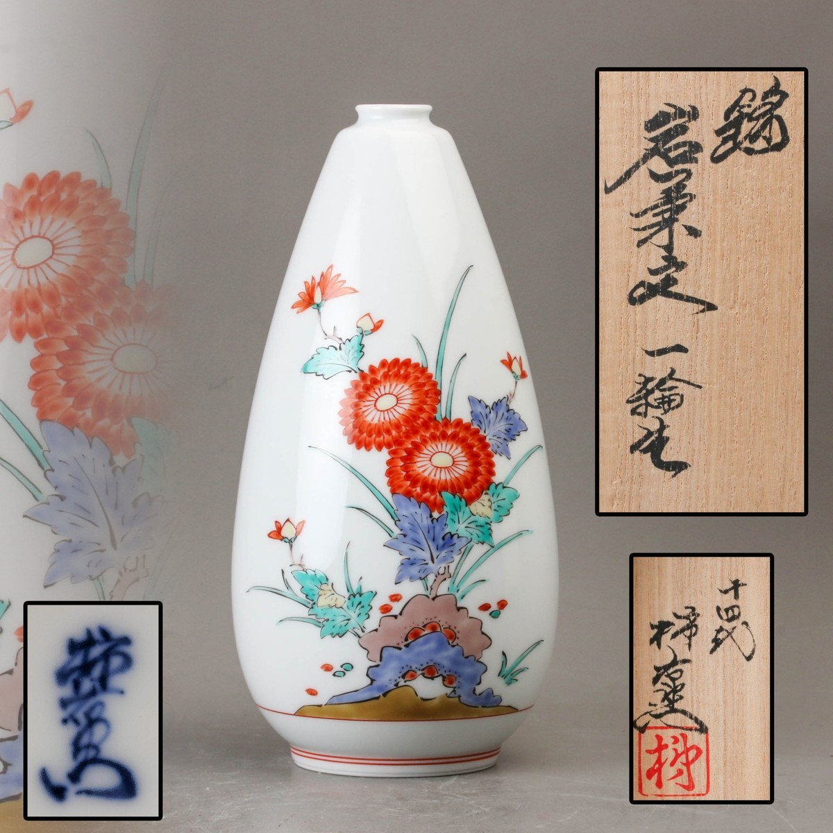 【SAG】十四代 酒井田柿右衛門 錦岩菊文一輪生 共箱 本物保証