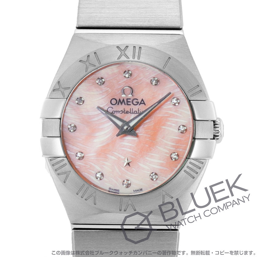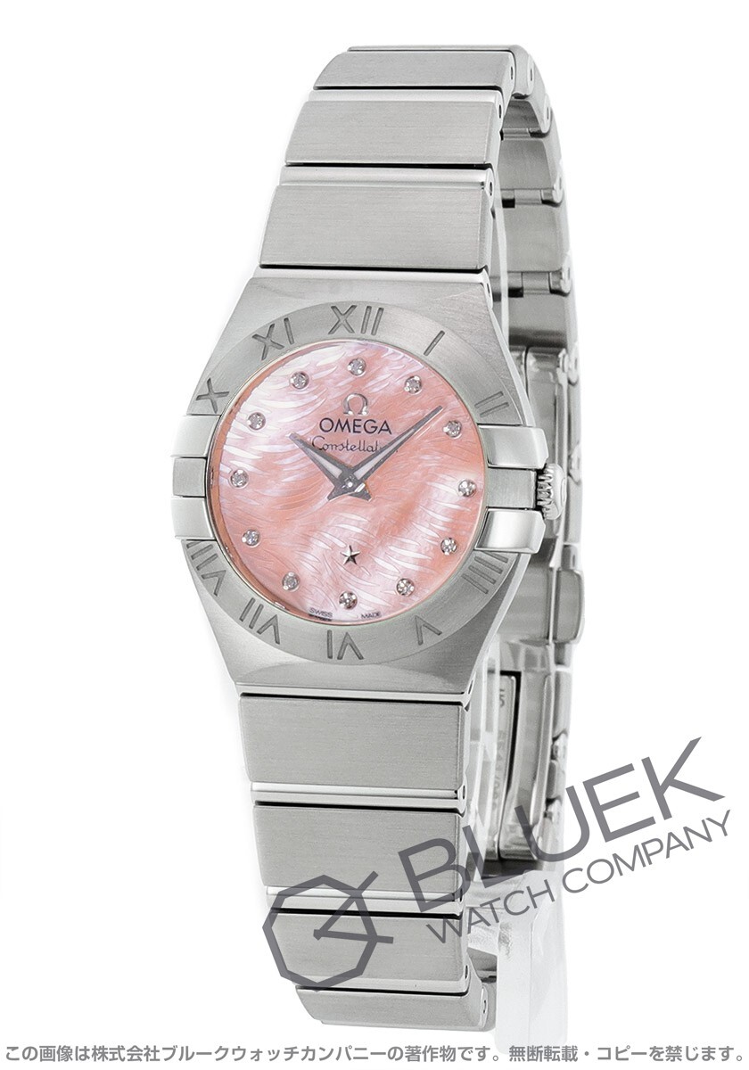 女性らしい華奢なサイズのケース&ブレスに12粒のダイヤモンド(0.03ct)インデックスを配置したコンステレーションは、コーラルピンクのシェルダイヤルにローマ数字刻むベゼルを両サイドから“4つの爪”が掴んだ上品で洗練されたデザインが人気のタイムピース。6時に星が輝くダイヤルには“プリュム”と呼ばれる羽模様が施され、シルバー指針には夜光塗料が塗布されて暗所でも視認性を発揮します。中でも実用性に優れたプッシュ式の両開きバックルが魅力で、オンオフ問わず様々なスタイルに合わしていただけます。 |