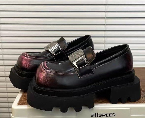 【高品質】全2色 スリッポン ローファー モカシン 丸トウ 厚底靴 プラットフォーム シンプル 35 ピンク