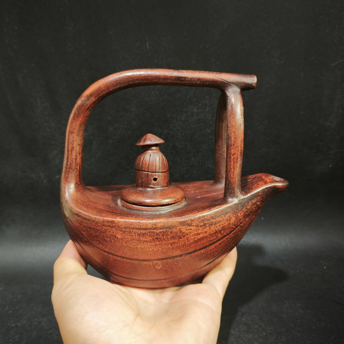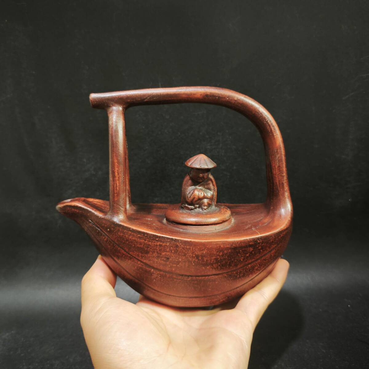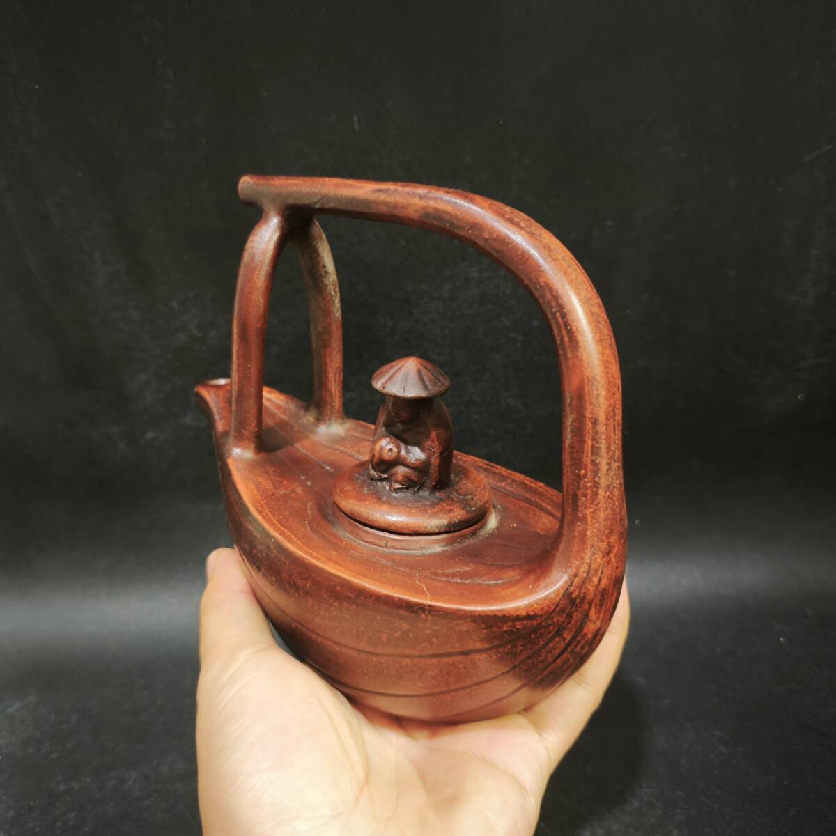 【超珍館蔵】紫砂壺 漁翁提梁壺 時大彬款 清水 茶具 茶道品 置物 賞物 古賞物 古董品 古美術品 時代物 旧家蔵出 稀少珍蔵品