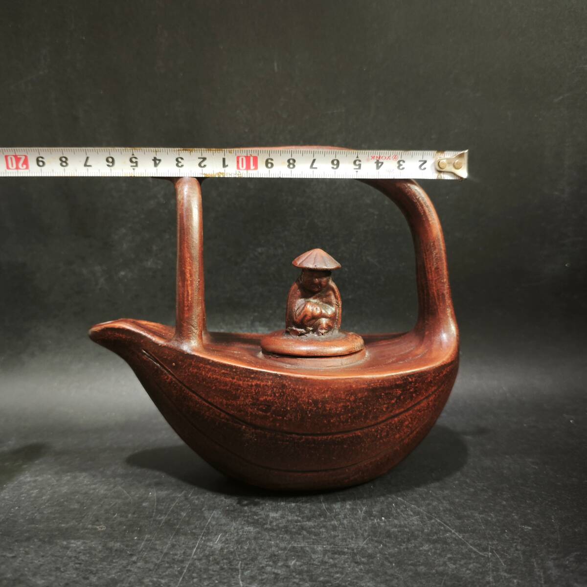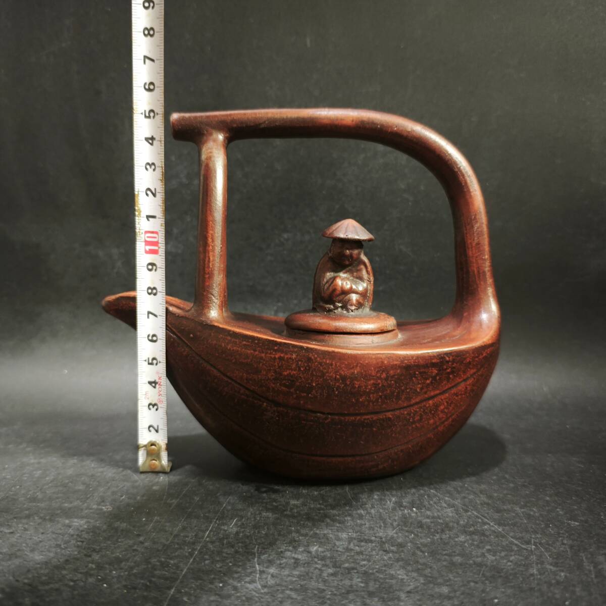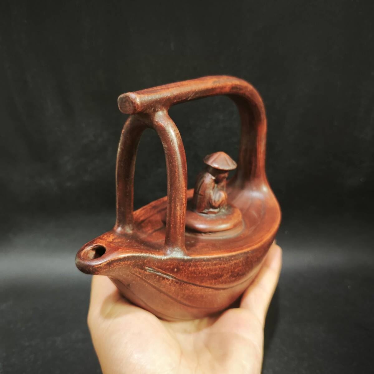 【超珍館蔵】紫砂壺 漁翁提梁壺 時大彬款 清水 茶具 茶道品 置物 賞物 古賞物 古董品 古美術品 時代物 旧家蔵出 稀少珍蔵品