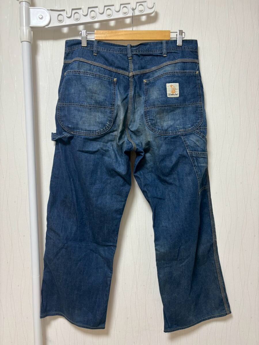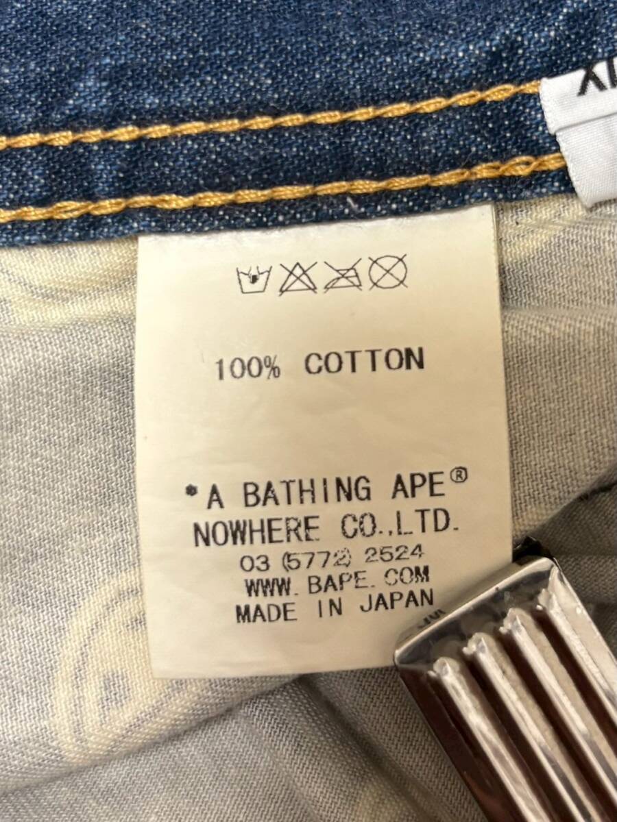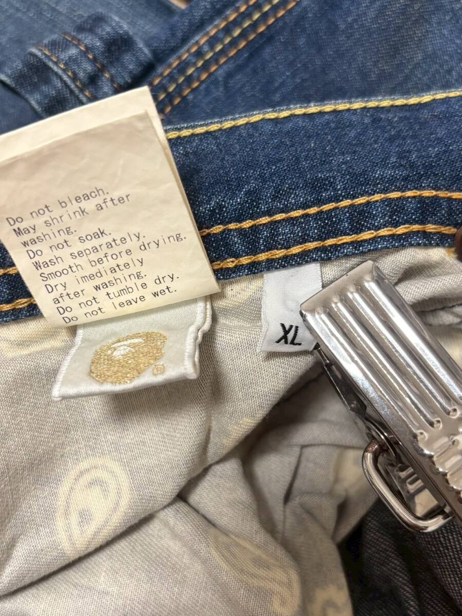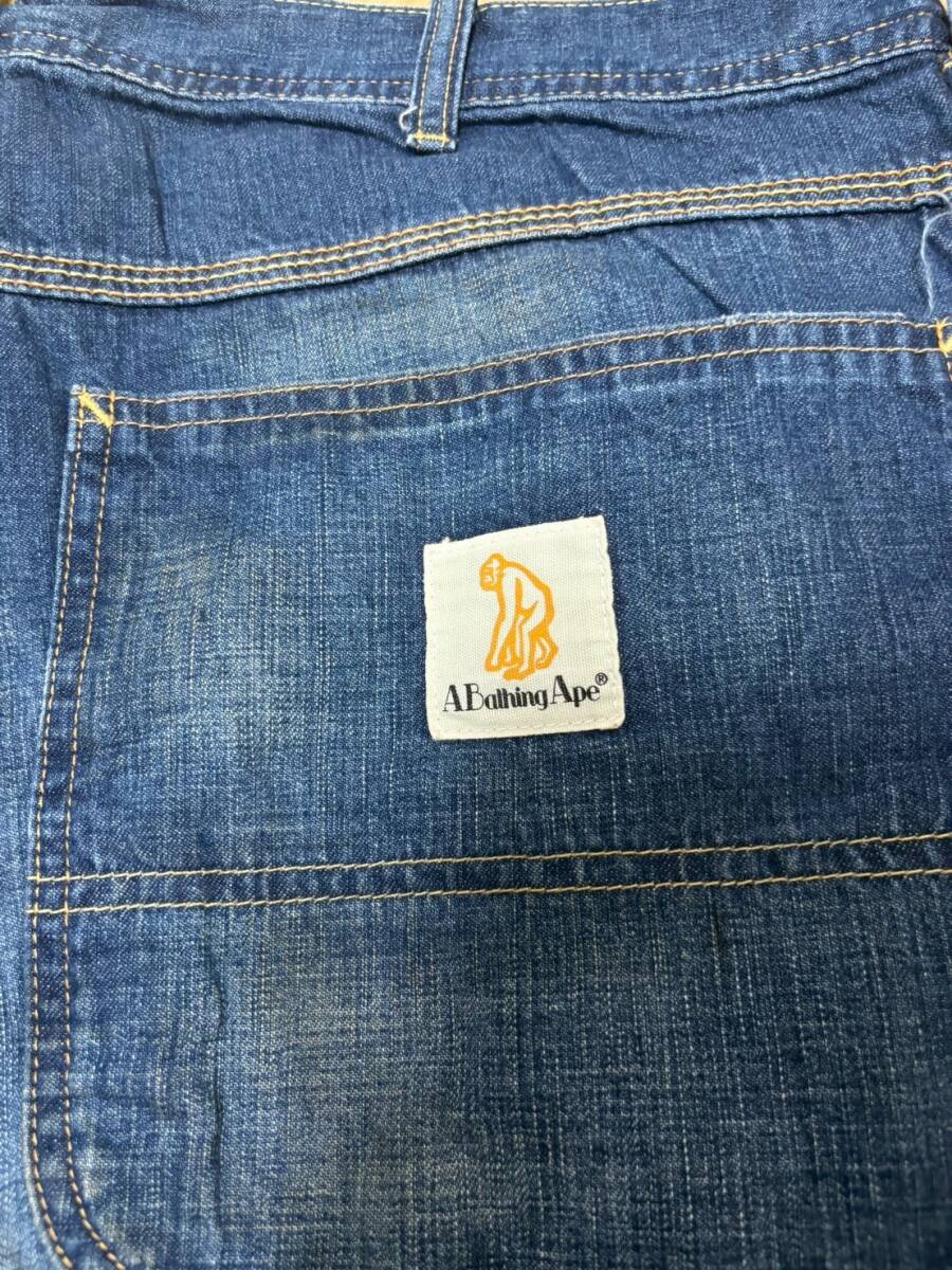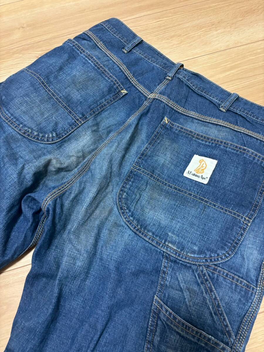 美品☆XL [A BATHING APE] ヴィンテージ汚し加工 ペインター インディゴデニムパンツ XL 日本製 エイプ