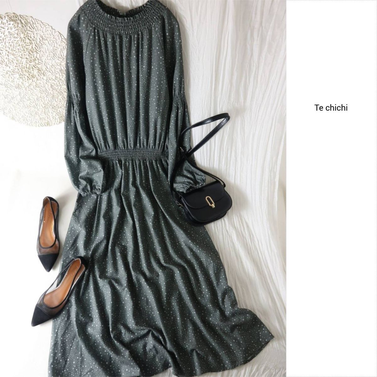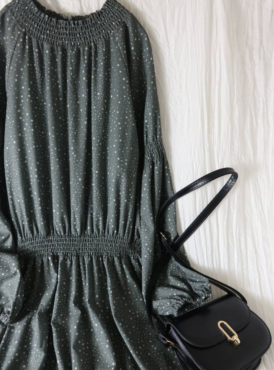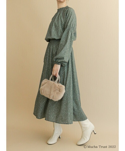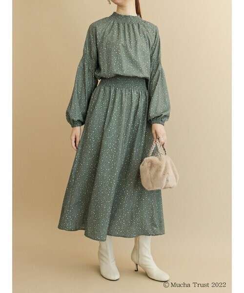 ミュシャの世界観を表現したワンピースです。シャーリングのディテールがフェミニンな印象を漂わせます。ウエスト部分を絞ることでメリハリのあるシルエットに◎1枚で着用するのはもちろん、カーディガンなどを羽織って着用するのもおすすめです。