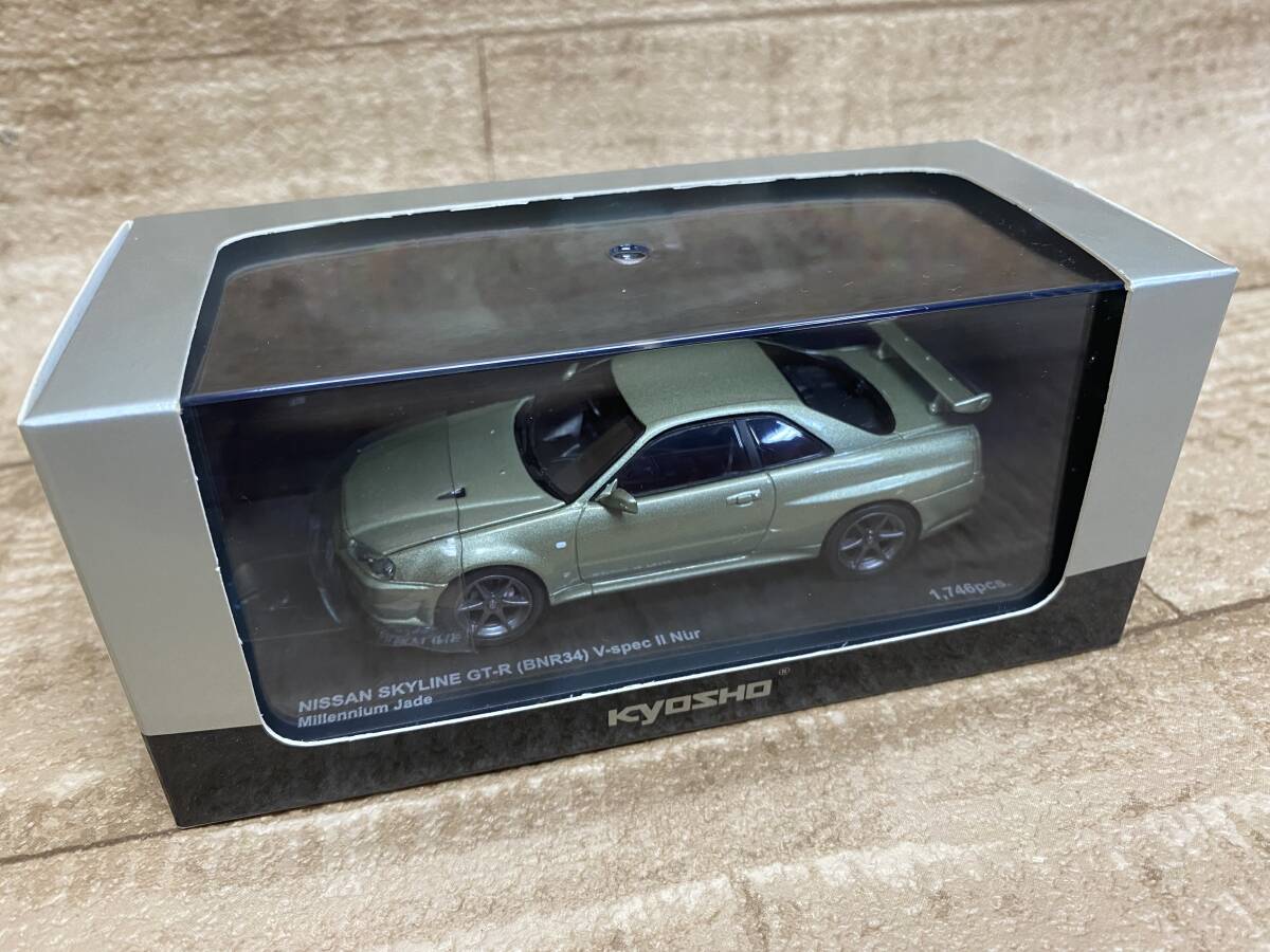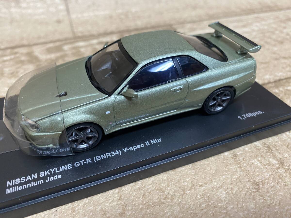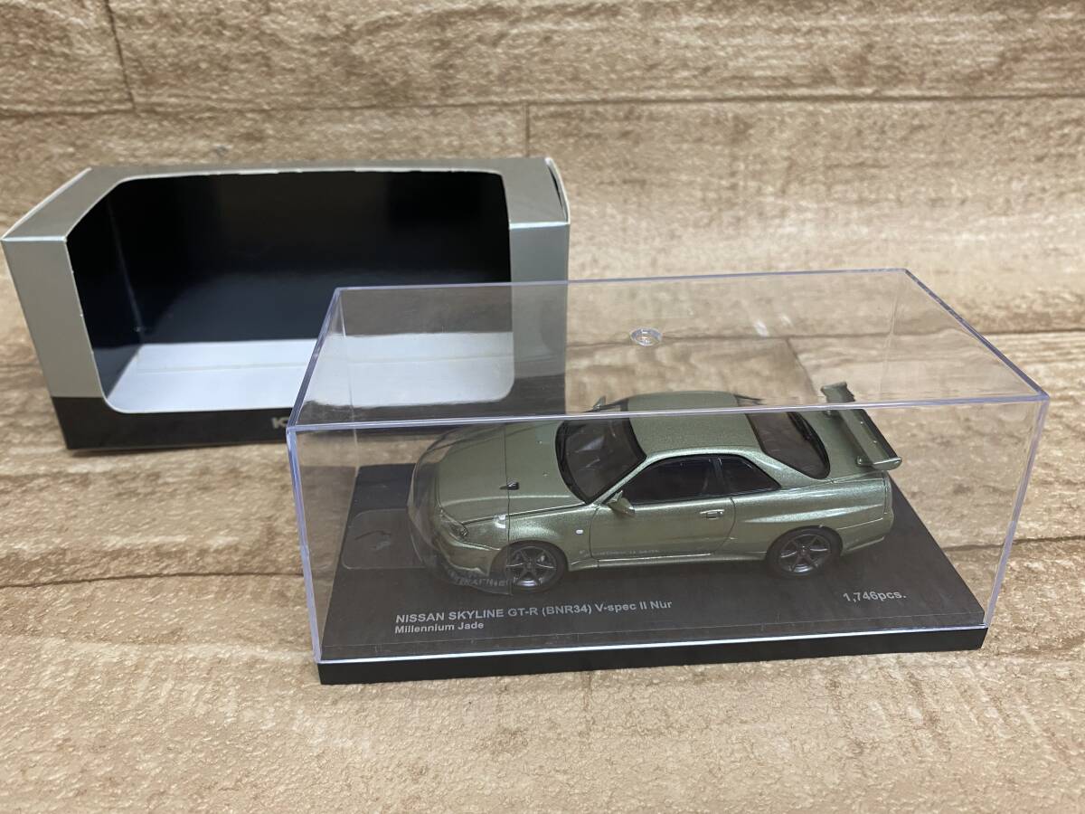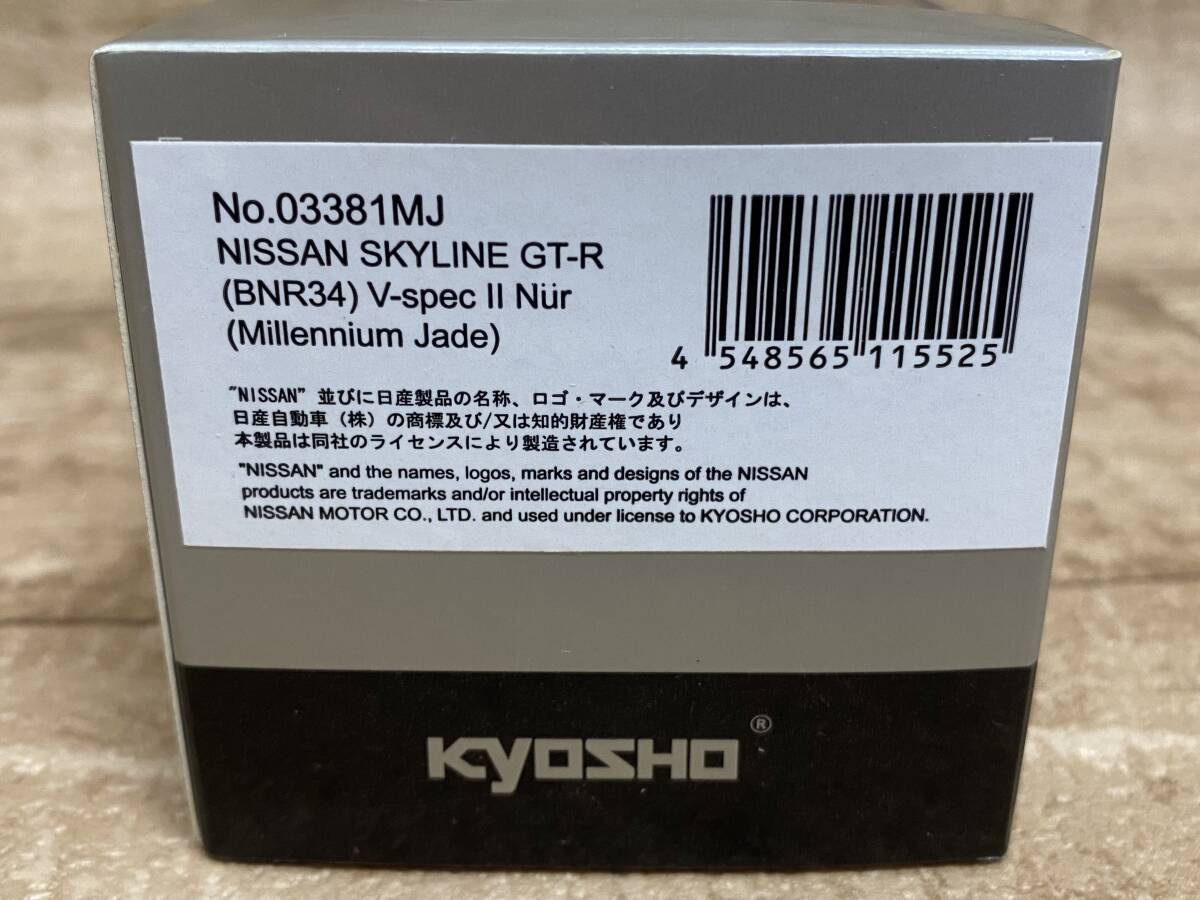 26 極美品 京商 1/43 Nissan 日産 SKYLINE GT-R (BNR34) VスペックⅡ Nur ミレニアムジェイド ミニカー NO.03381MJ