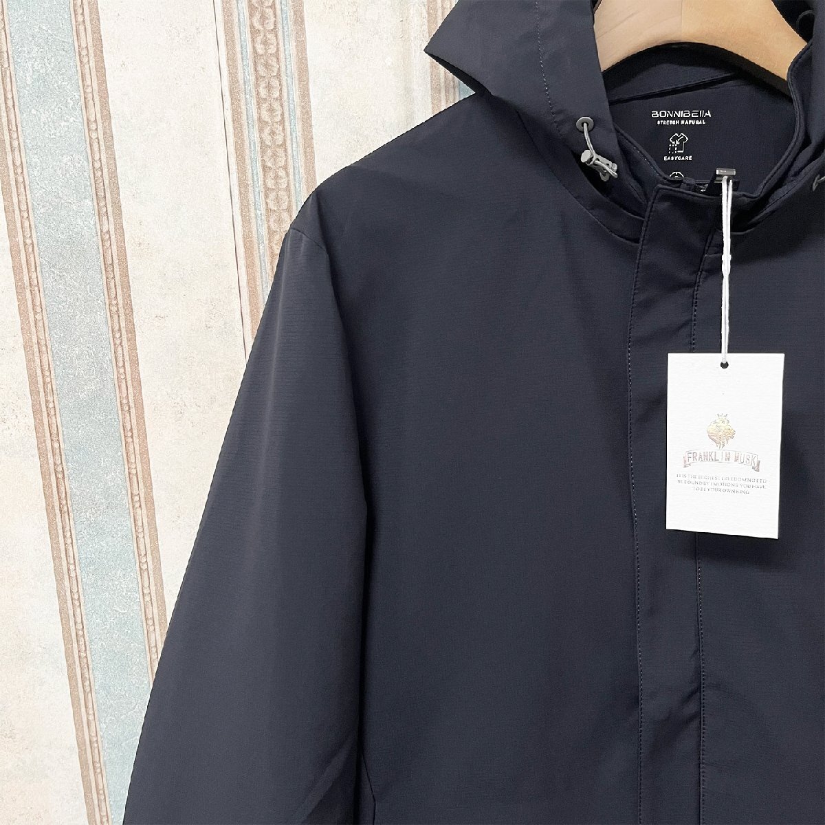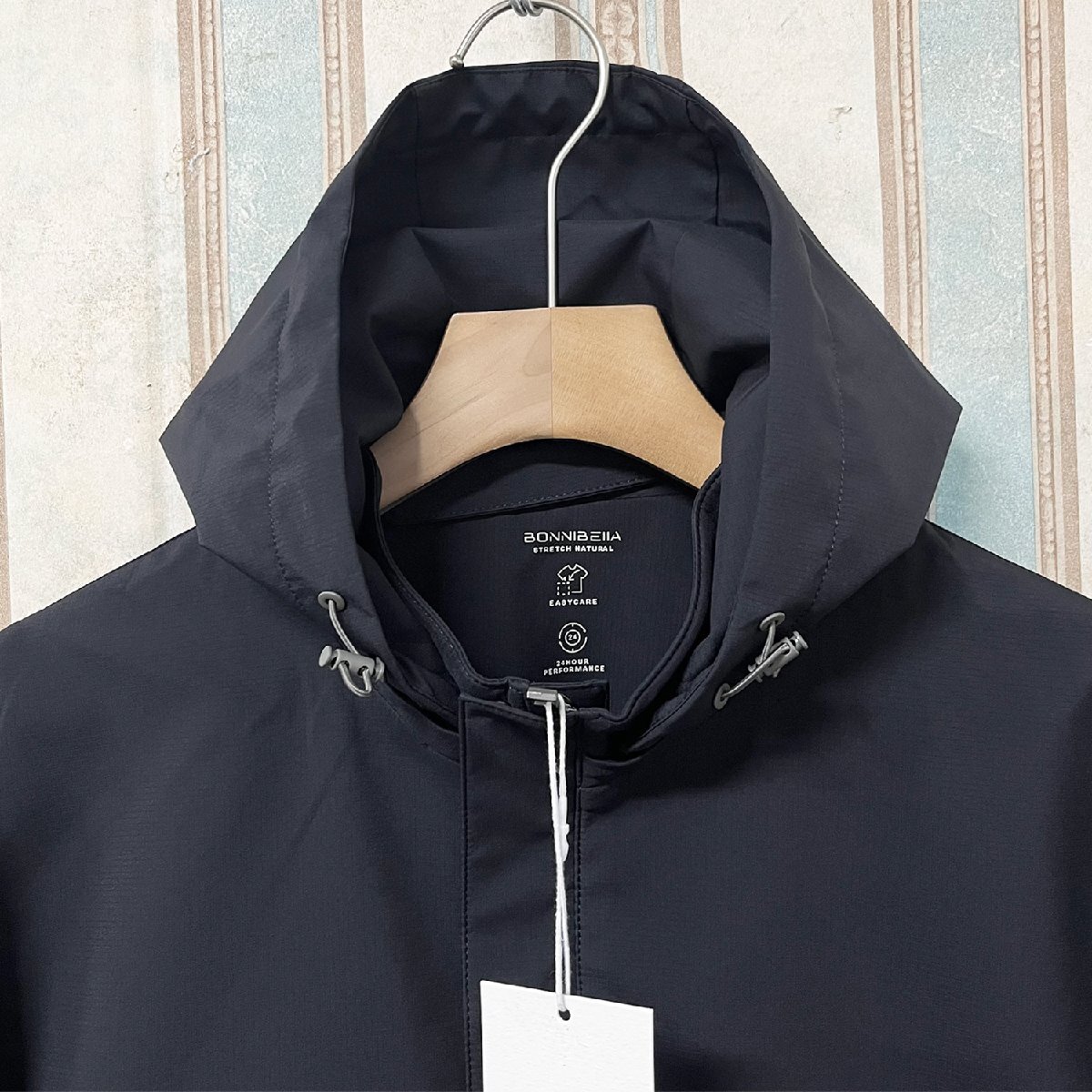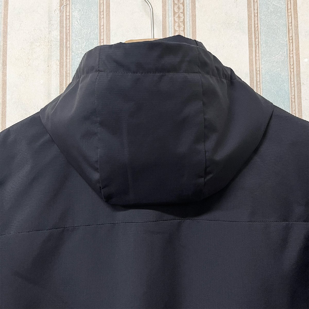 無駄の装飾もないシンプルなデザインで、着膨れせずにすっきりとしたシルエットで着こなすだけでトレンド感のあるコーデに完成。袖口はゴム仕様で、手首に合わせて閉めれば、防風性能が抜群。ドローコード付きのフードは、フィット感を調節できるのも魅力。フードを取り外せば、スタンドカラージャケットとして活躍します。両側のポケットはファスナー付きで小物の紛失を防止でき、携帯電話や鍵などの小物の収納に便利です。