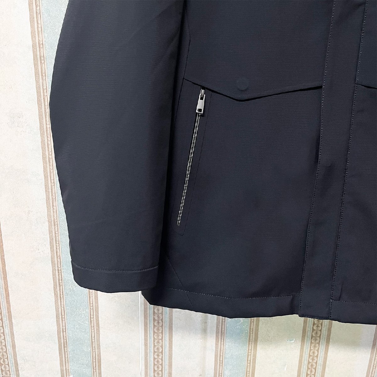 表地はしっかりとした撥水素材を採用し、小雨程度なら水が玉になって滑り落ち、汚れを効果的に防ぎます。また、シワになりにくく、長時間着用していても型崩れしにくく、お手入れも非常に簡単です。裏地には厚みのある素材を使用しており、肌触りが柔らかく保温性に優れており、一日中暖かさを保ちます。