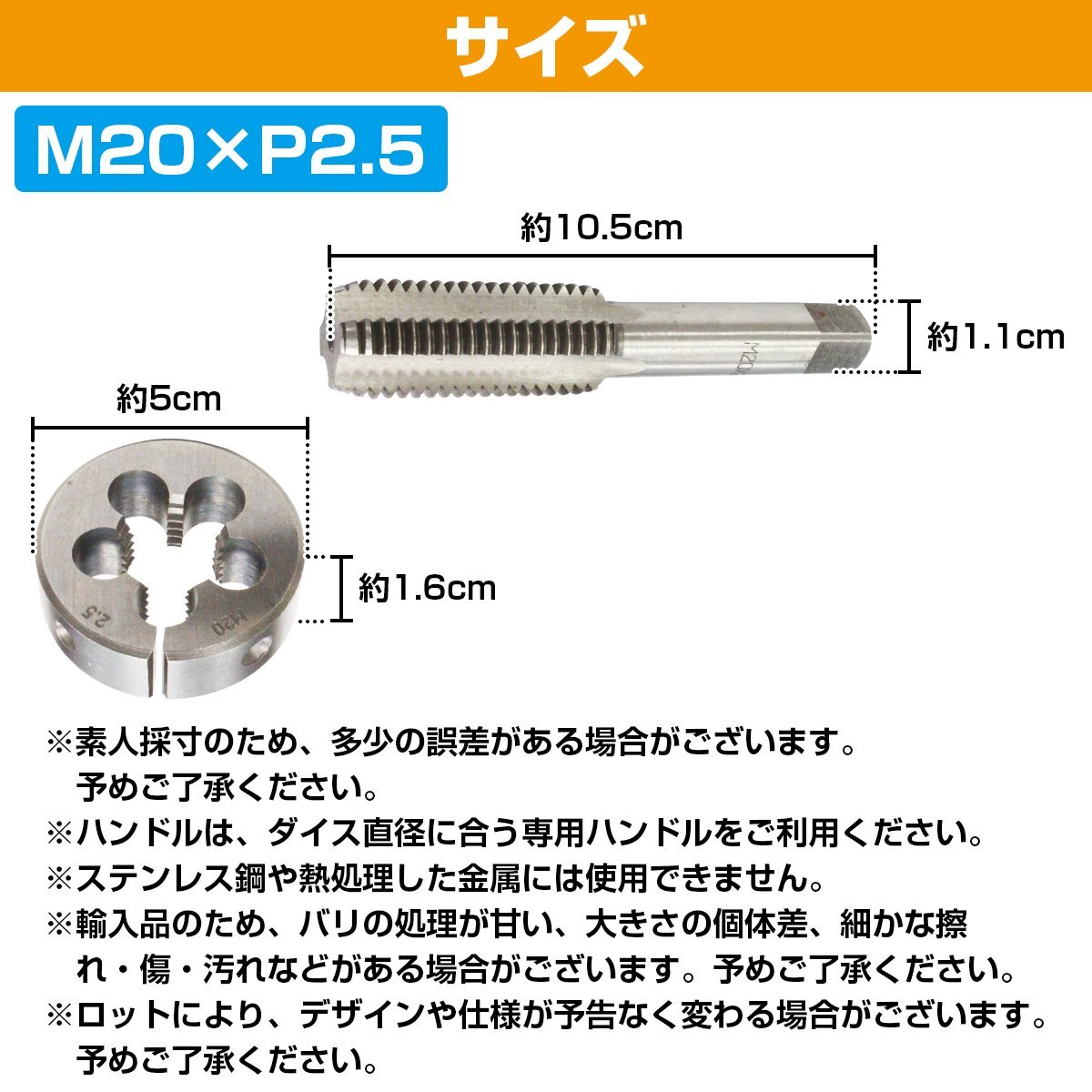 『M20×P2.5』タップダイス セット 目立て ネジ 山 修正 めねじ 再生 ねじ 穴 修復 補強 耐久性向上 雌ネジ 補修 工具 キット