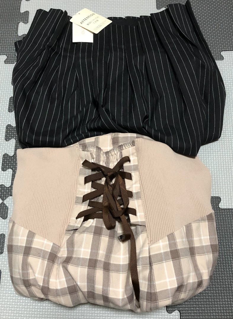 earth music&ecology アース サイドリブバックレースアップスカート Mサイズ & ITS'DEMO イッツデモ ストライプ柄スカート