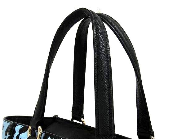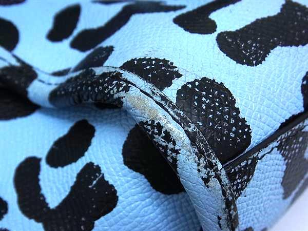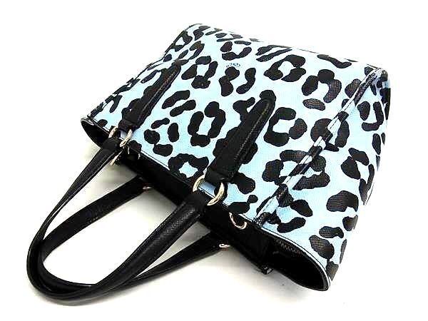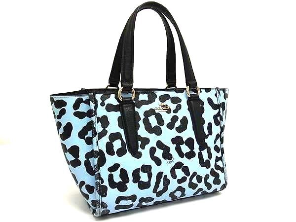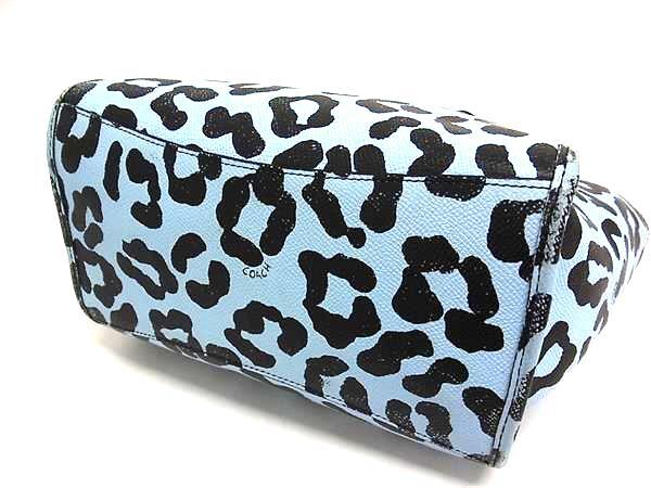 1円 COACH コーチ 34334 レザー レオパード ヒョウ柄 ハンドバッグ トート バッグ レディース ライトブルー系×ブラック系 FR4524