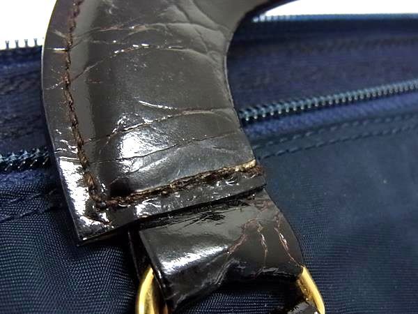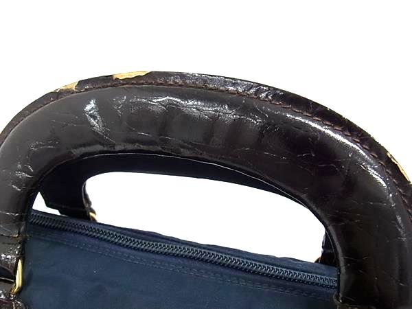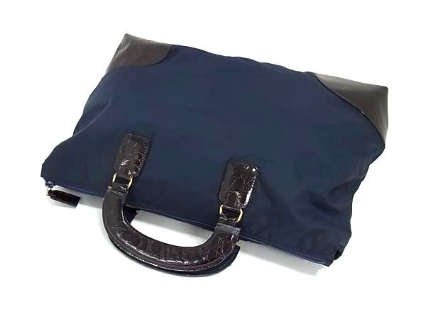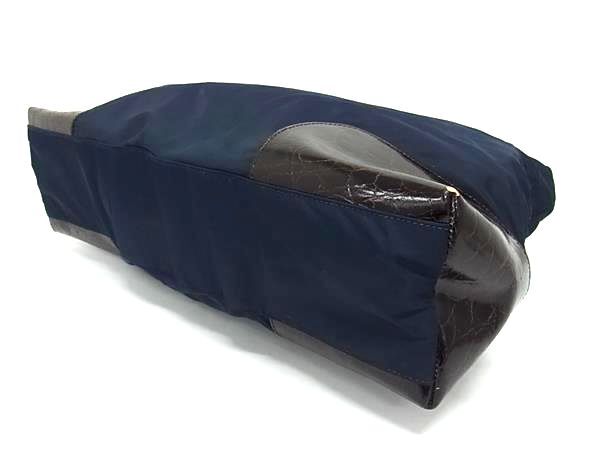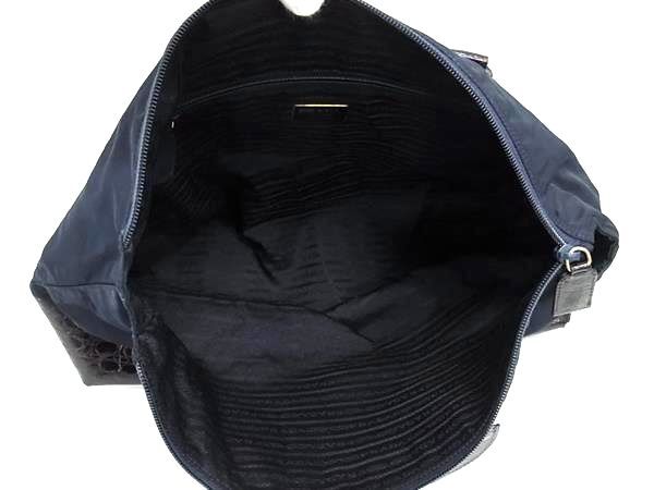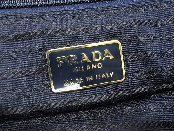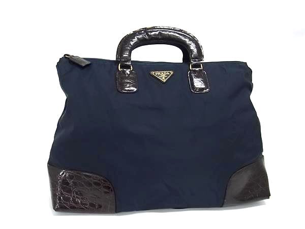 1円 PRADA プラダ テスートナイロン×レザー ハンドバッグ トートバッグ レディース メンズ ネイビー系×ブラウン系 DB2972