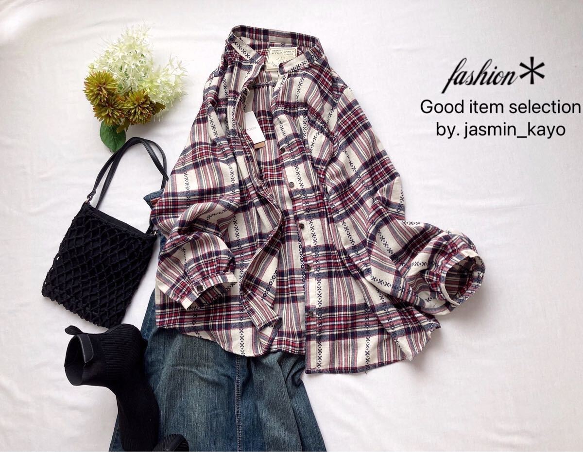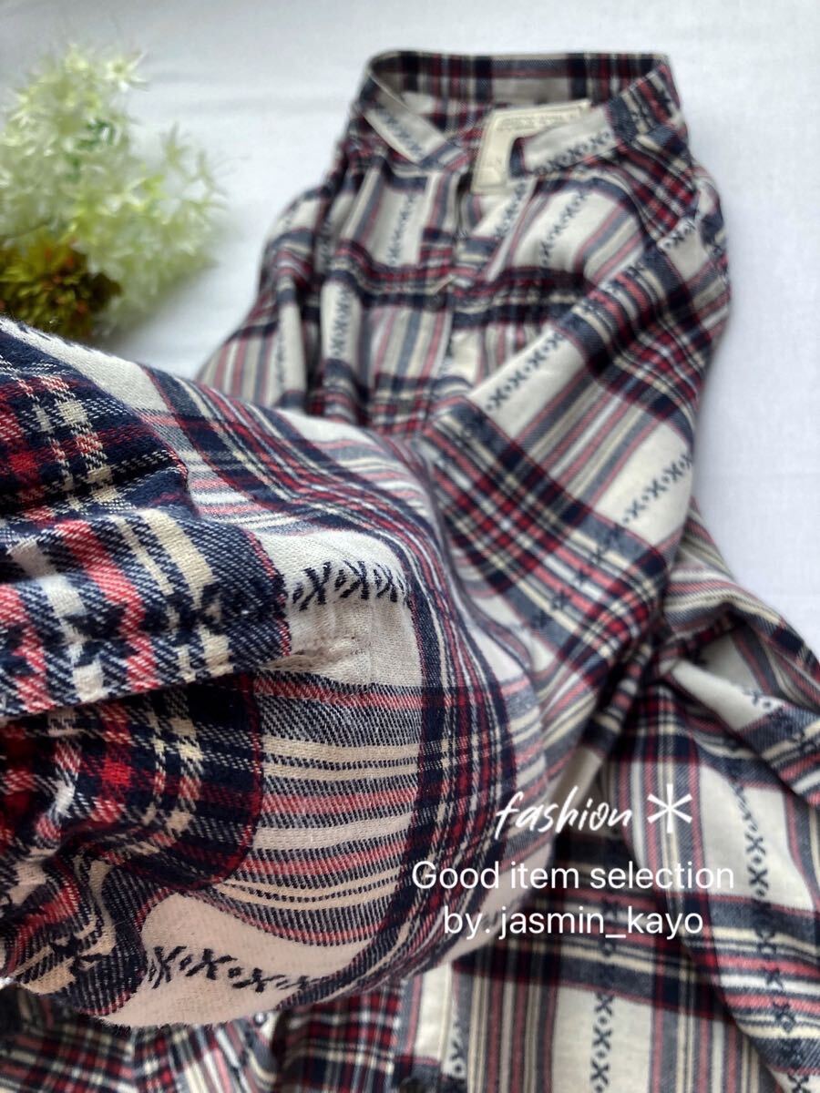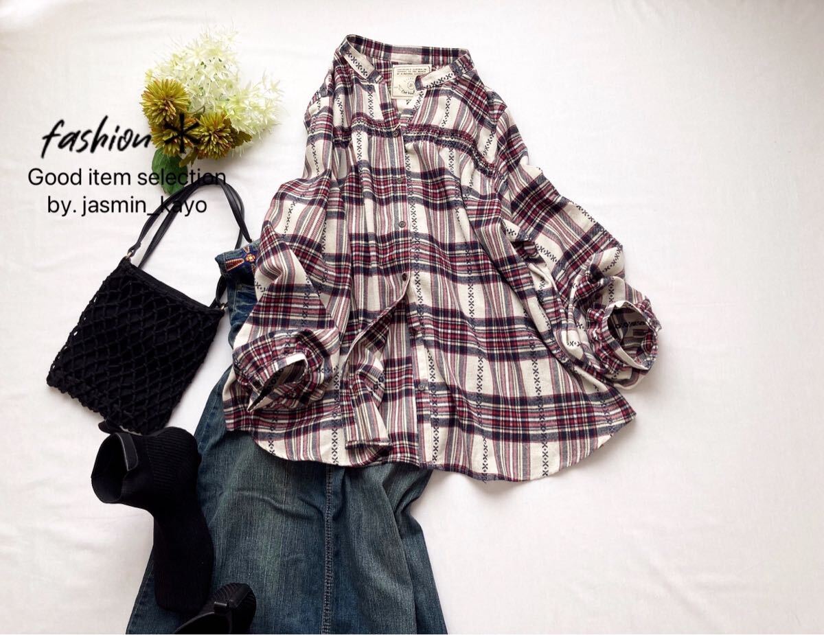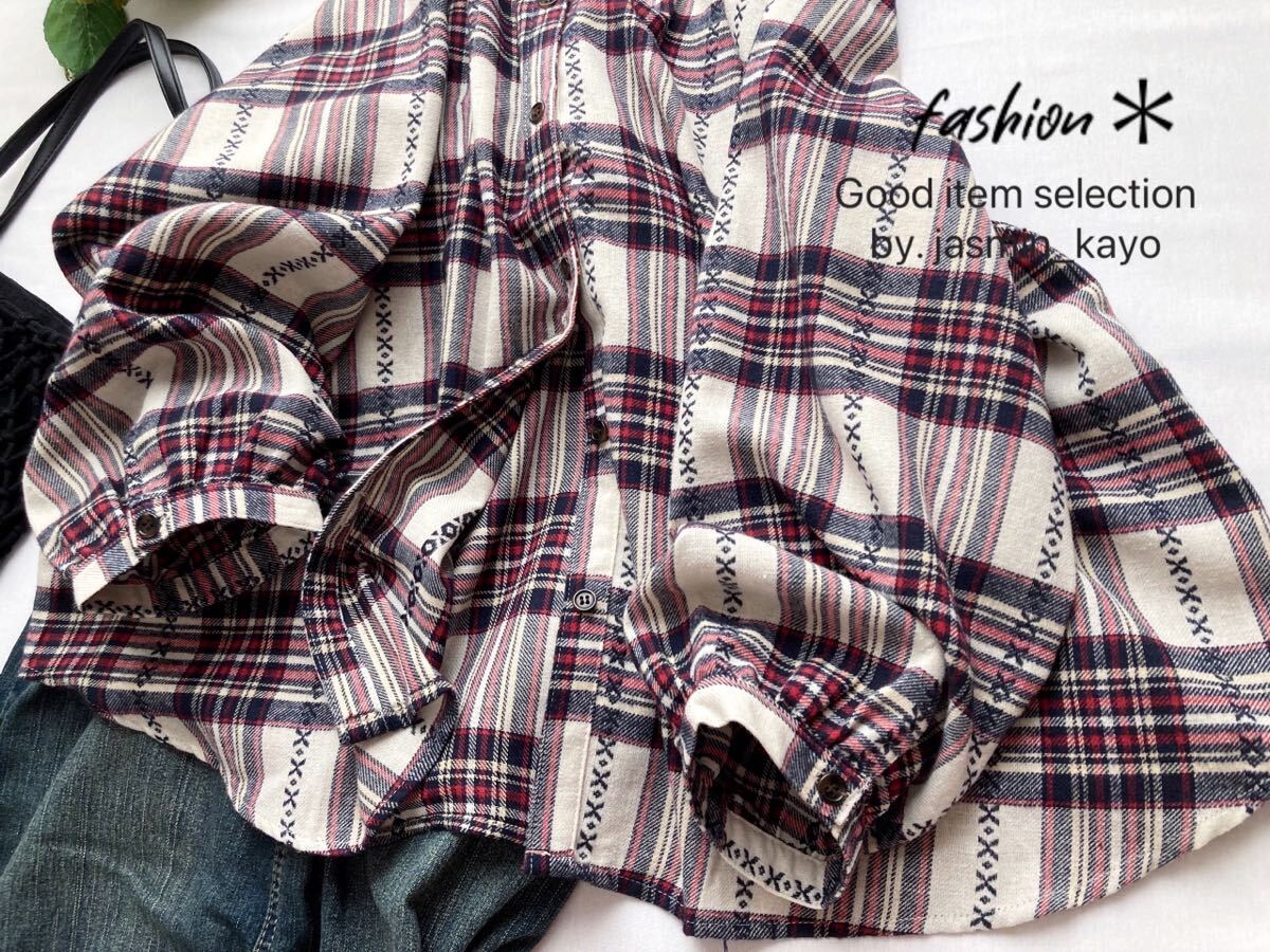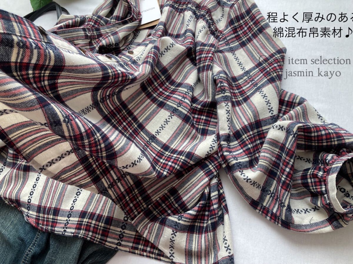 ◆新品4L~3L/LL◆刺繍入りほんのり起毛*赤×濃紺×ベージュ×オフホワイトチェック柄スキッパーネック&シャーリングブラウス羽織りにも
