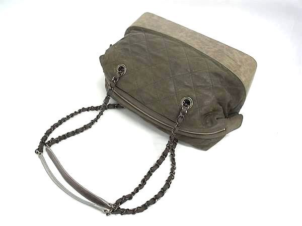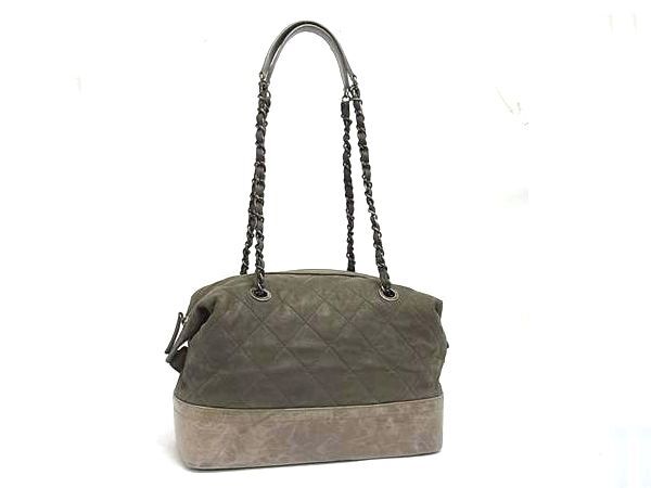 1円 CHANEL シャネル カブリエル ドゥ シャネル マトラッセ ラージ ホーボー レザー トートバッグ ショルダー 肩掛け グレー系 BR0514
